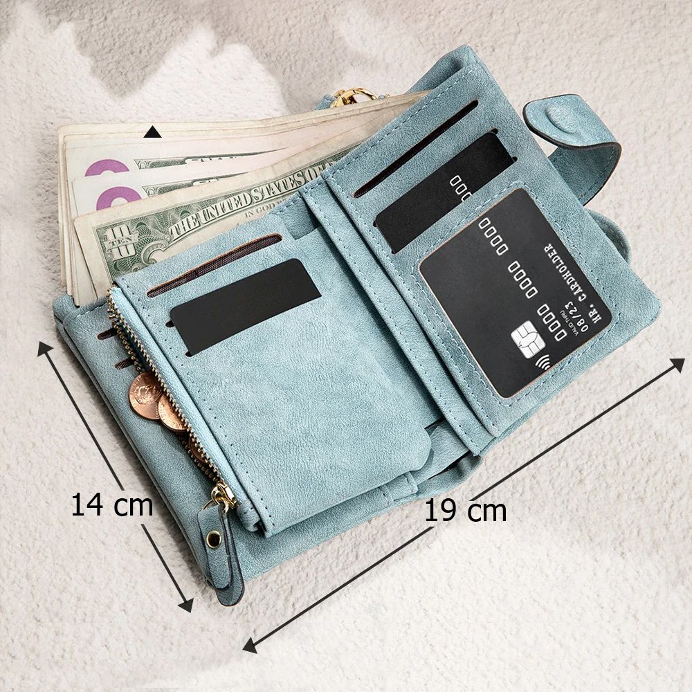 Sa conception pliante garantit une organisation optimale et un accès facile à vos objets de première nécessité. Il comporte plusieurs compartiments pour les cartes et l'argent liquide, ainsi que des poches à fermeture éclair pour les pièces de monnaie. De plus, il est livré avec un bracelet élégant pour libérer vos mains, idéal pour une journée ou une soirée bien remplie. Le porte-cartes intégré garantit la sécurité de vos cartes et leur facilité d'accès sans avoir à fouiller dans un portefeuille encombré.