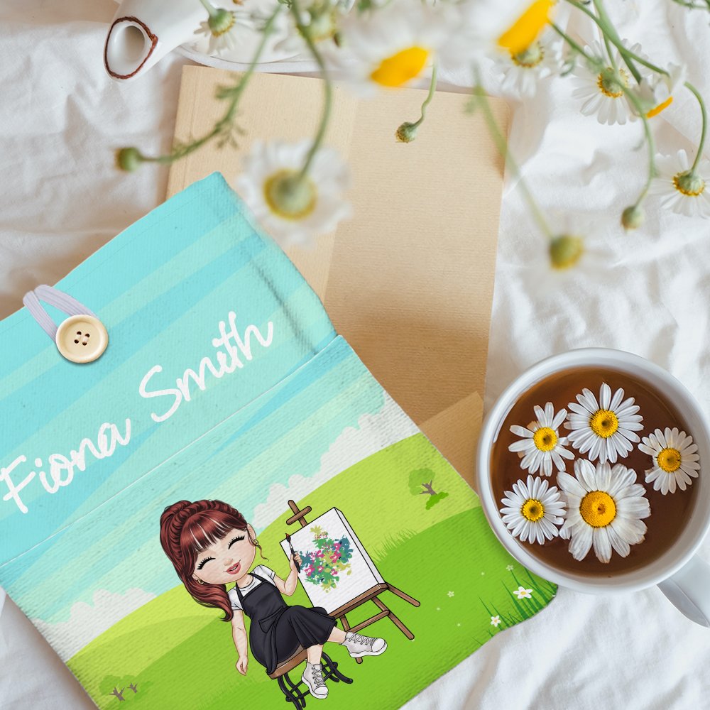 Cette pochette de livre présente l'image chaleureuse d'une femme jeune ou âgée peignant ou cousant avec soin et est accompagnée d'un choix d'arrière-plans avec trois thèmes différents : pelouses, maison intérieure et scènes de bureau, créant ainsi un effet visuel à la fois chaleureux et artistique. De plus, la pochette de livre peut recevoir des noms personnalisés pour la rendre encore plus unique.