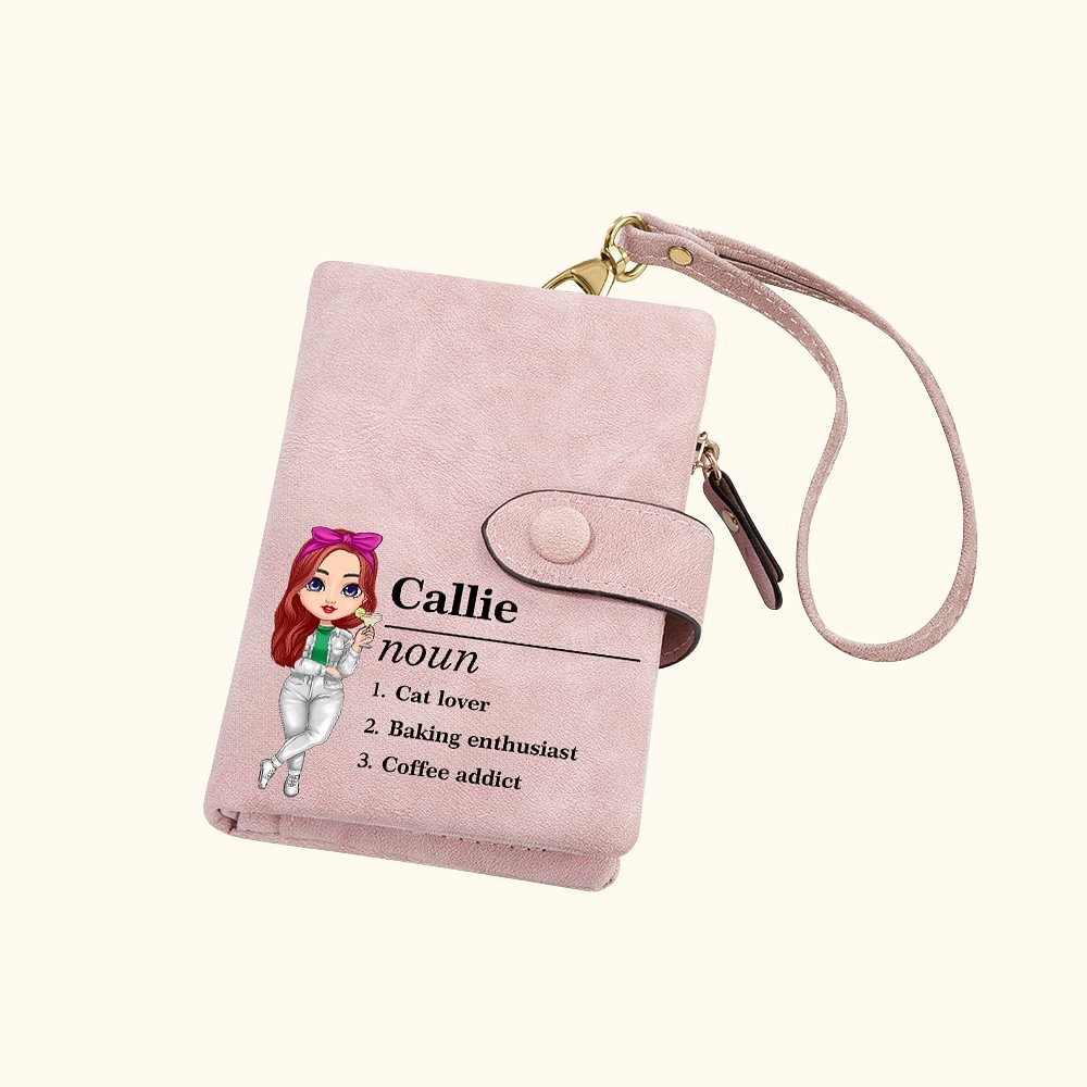 Ce portefeuille est conçu pour les personnes à la mode, façonnant l'image des beaux hommes et des belles femmes de la ville et montrant le tempérament des personnages. Associez-le à un nom personnalisé et à 1 à 5 phrases de rédaction personnalisée pour créer un accessoire unique.