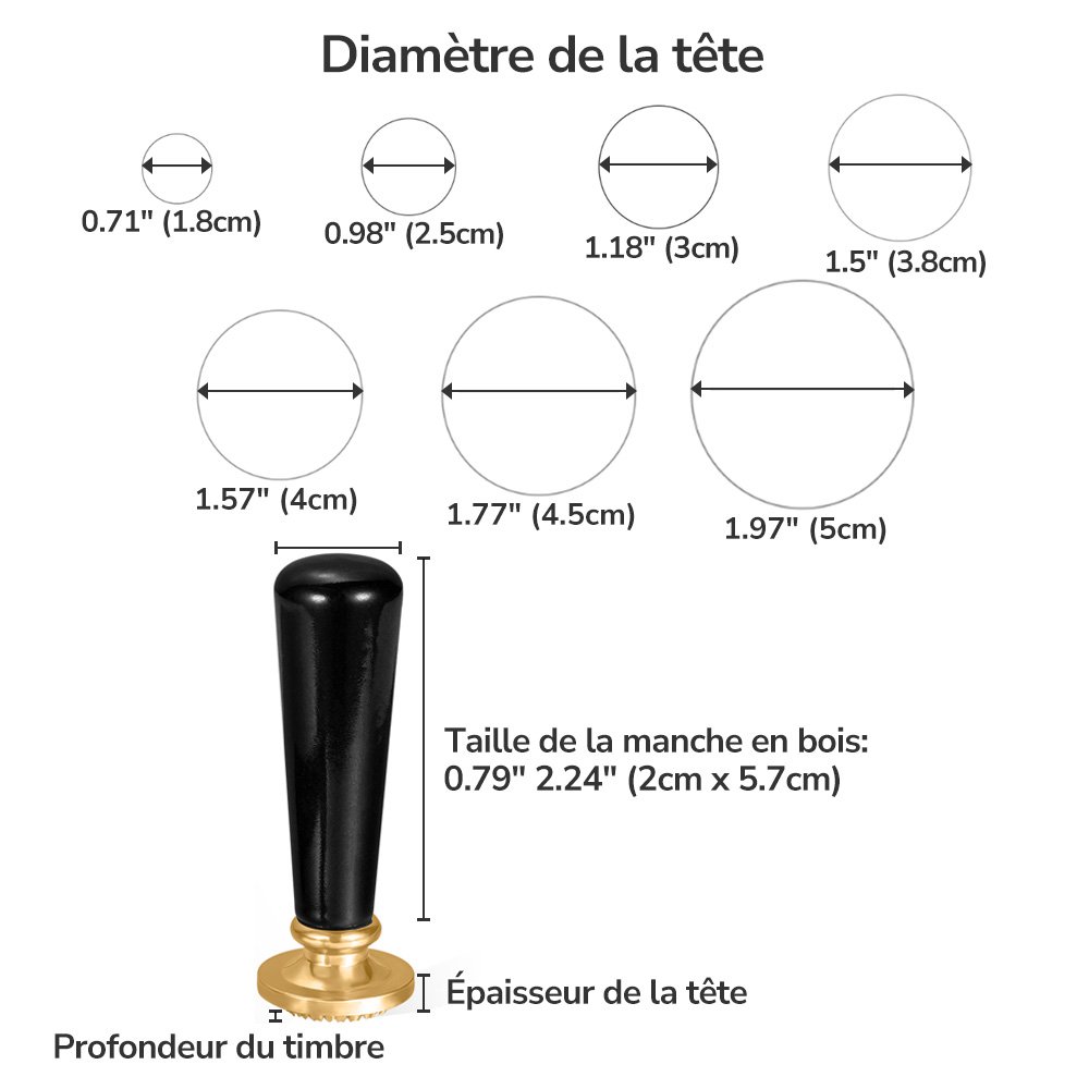 Diamètre de la tête en cuivre : 1,8 cm, 2,5 cm, 3 cm, 3,8 cm, 4 cm, 4,5 cm, 5 cm.