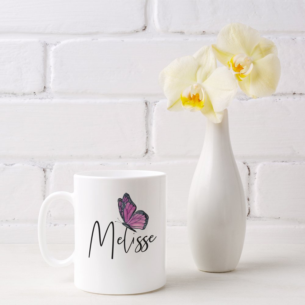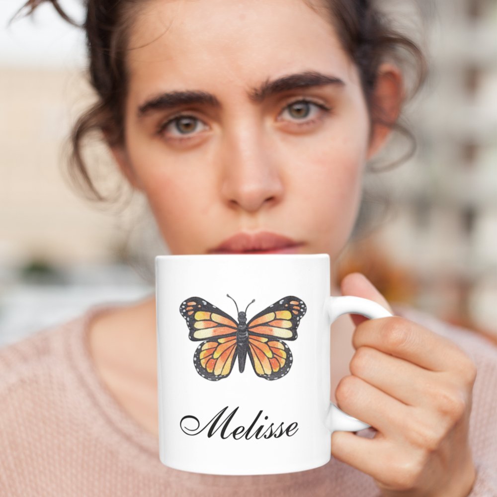 C'est un excellent cadeau pour votre famille, personnalisez ce mug délicat avec votre nom et le papillon de votre choix, il rendra votre cadeau magnifique !