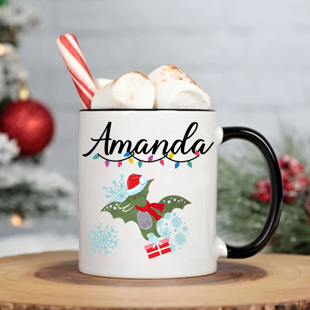 Surprenez votre famille et vos amis avec cette adorable tasse de Noël en forme de dinosaure. Vous pourrez déguster un café ou un lait de poule en hiver ou lors d'une soirée cinéma. Nos tasses de Noël personnalisées avec des noms de dinosaures seront le choix de cadeau parfait pour vous rendre heureux, vous et vos proches.
