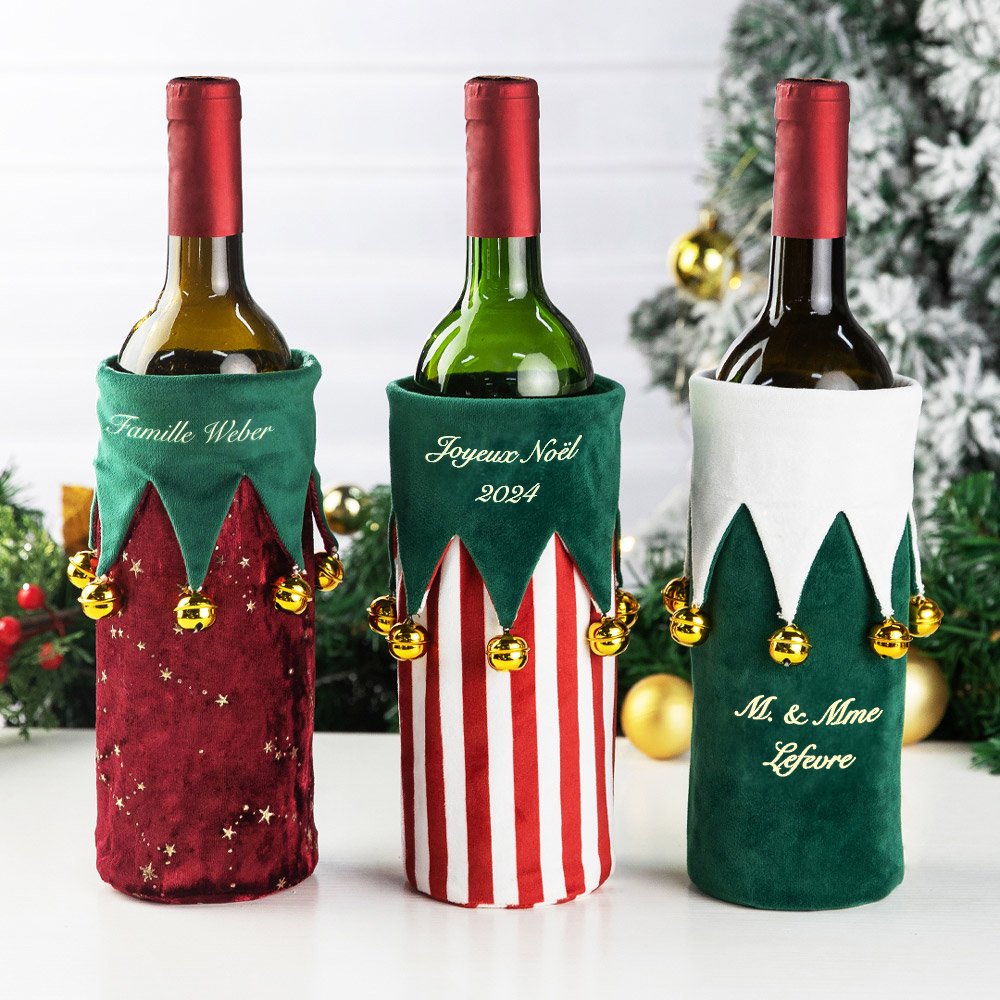 Ces housses pour bouteilles de vin sont conçues avec des éléments classiques de lutin de Noël et remplacent à merveille les étiquettes de vin si ennuyeuses. Le joli pendentif en forme de cloche ajoute une atmosphère festive pour que votre vin et vos spiritueux restent une surprise. Il convient de noter que chaque couvercle peut être utilisé des deux côtés, l'achat d'un couvercle équivaut à l'achat de deux couvercles ! C'est génial !