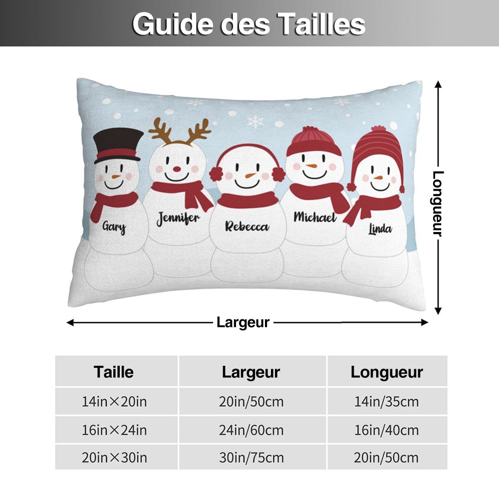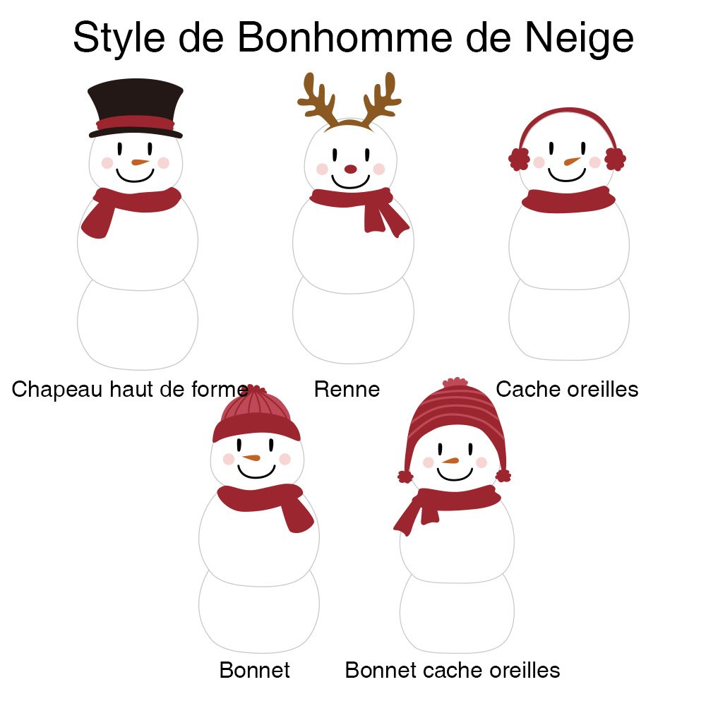 Un bonhomme de neige symbolise la joie et l'innocence de l'hiver, rappelant les souvenirs nostalgiques de la construction de bonshommes de neige avec les personnes aimées. Ce charmant dessin représente une adorable famille de bonhommes de neige, avec 5 styles de bonhommes de neige comme le chapeau, l'élan, le cache-oreille, le bonnet et le cache-oreille. Chaque bonhomme de neige peut être personnalisé avec le nom de votre choix, ce qui en fait un cadeau vraiment unique.