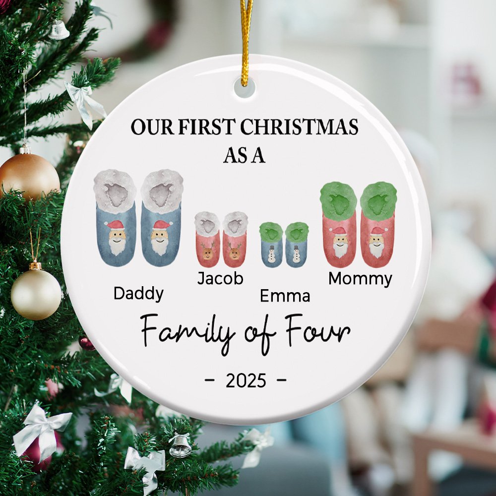 Cette décoration de Noël personnalisée est la façon idéale de commémorer votre premier Noël en tant que famille. D'adorables chaussures en coton représentent chaque membre de la famille. Vous pouvez les personnaliser avec leur nom, créant ainsi une charmante représentation de vos proches et ajoutant une touche personnelle à vos décorations de Noël.