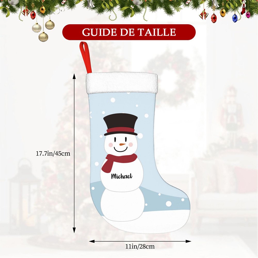 Répandez la joie des fêtes et surprenez vos proches avec cette chaussette en forme de bonhomme de neige. Que vous l'offriez en cadeau ou que vous l'utilisiez pour rehausser vos propres décorations, cette chaussette ne manquera pas de faire naître des sourires et de réchauffer les cœurs. La touche personnalisée en fait un cadeau idéal pour les grands-parents, les parents, les enfants ou même les jeunes mariés qui fêtent leur premier Noël ensemble.