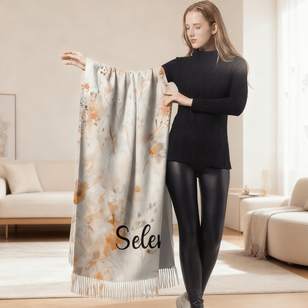 Choisissez parmi cinq styles, chacun présentant de magnifiques motifs floraux inspirés d'aquarelles qui apportent une touche d'élégance et de beauté naturelle à votre garde-robe. Faites en sorte qu'il soit vraiment le vôtre en y ajoutant un nom personnalisé, transformant ainsi ce foulard en une œuvre d'art portable qui raconte votre histoire.