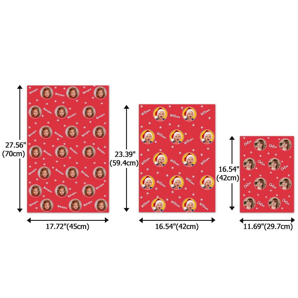 Choisissez la taille idéale pour votre cadeau grâce à trois options : Petit (11,69 * 16,54 pouces), Moyen (16,54 * 23,39 pouces) et Grand (17,72 * 27,56 pouces). Ce papier d'emballage est disponible en trois couleurs festives : rouge, vert et gris.