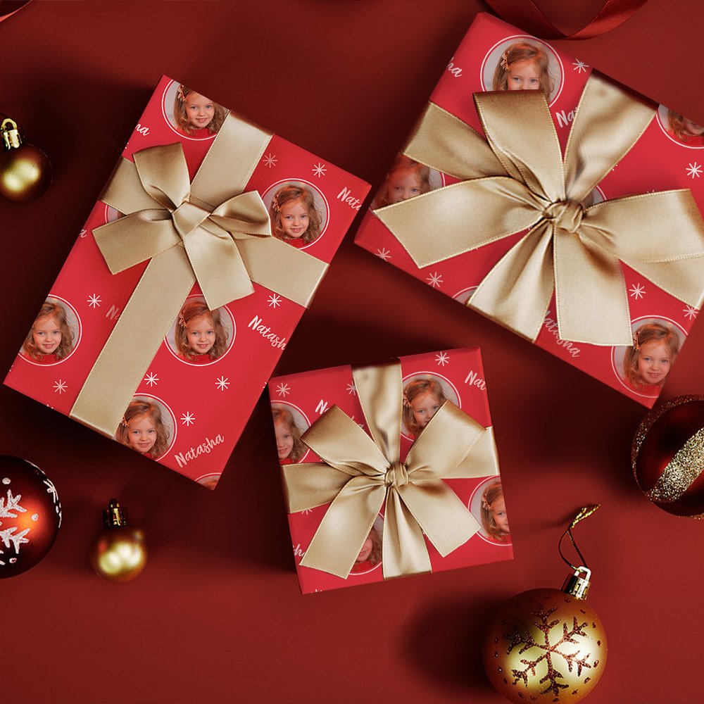 Ajoutez une touche personnelle à vos cadeaux en personnalisant le papier d'emballage avec une photo du destinataire. Le motif classique du flocon de neige et la photo personnalisée font de votre cadeau un objet unique. Cette touche personnalisée rend le cadeau plus mémorable et permet d'identifier rapidement à qui appartient le cadeau, ce qui lui confère un caractère unique et exclusif.