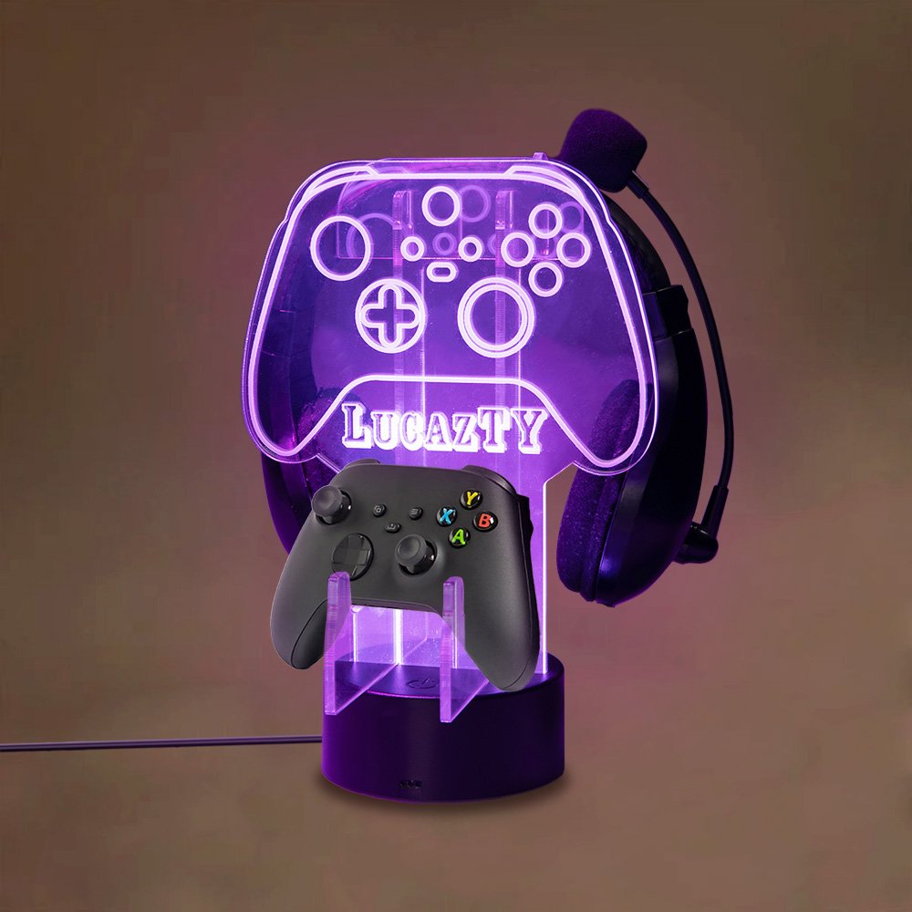 Idéal pour les joueurs, ce support personnalisé fait office de cadeau fonctionnel et personnalisé. Il combine une veilleuse, un support de casque et un support de manette, ce qui en fait un accessoire polyvalent pour les salles de jeu et les bureaux d'ordinateur.