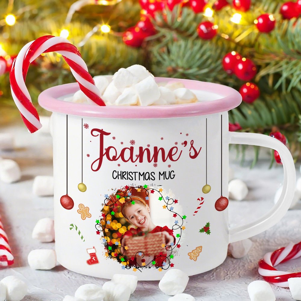 Inspiré des éléments festifs de Noël, ce charmant mug en émail présente des motifs ludiques qui peuvent être personnalisés avec une photo, un nom et un titre de votre choix, ce qui rend chaque tasse unique. Il ajoute une touche amusante et adorable à vos célébrations festives, ce qui ne manquera pas de faire sourire tout le monde.