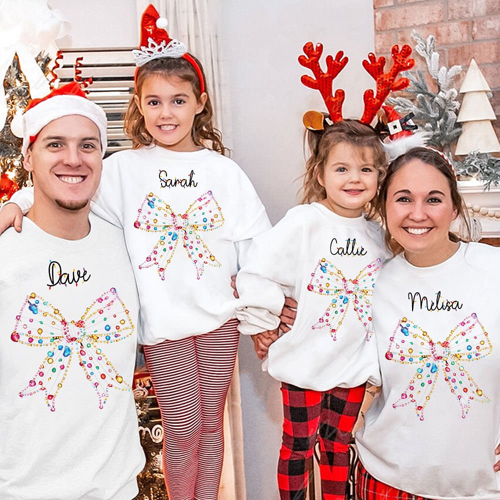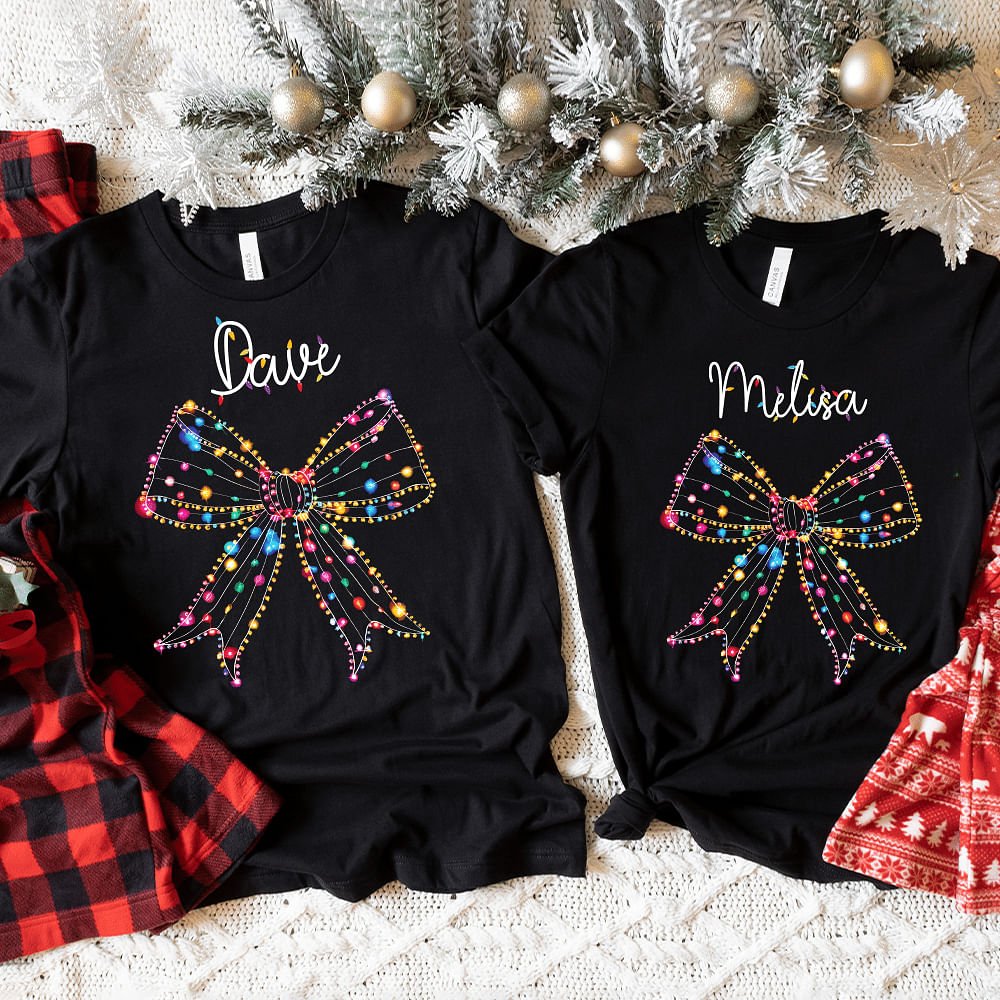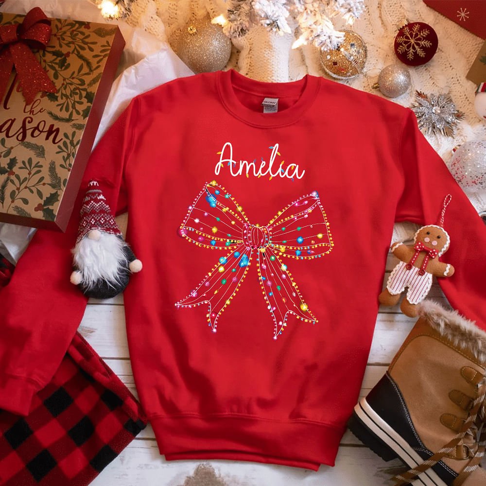 Ce vêtement se distingue par son design distinctif. Le devant du vêtement est orné de lumières de Noël colorées et d'un nœud coquet, créant ainsi une combinaison parfaite qui rehausse l'atmosphère festive. L'affichage personnalisé du nom ajoute une touche personnelle et rend chaque vêtement unique. Ce design unique ajoute une touche de créativité et de vivacité à votre garde-robe, ce qui en fait un excellent choix pour rehausser votre style et mettre en valeur vos goûts en matière de mode.