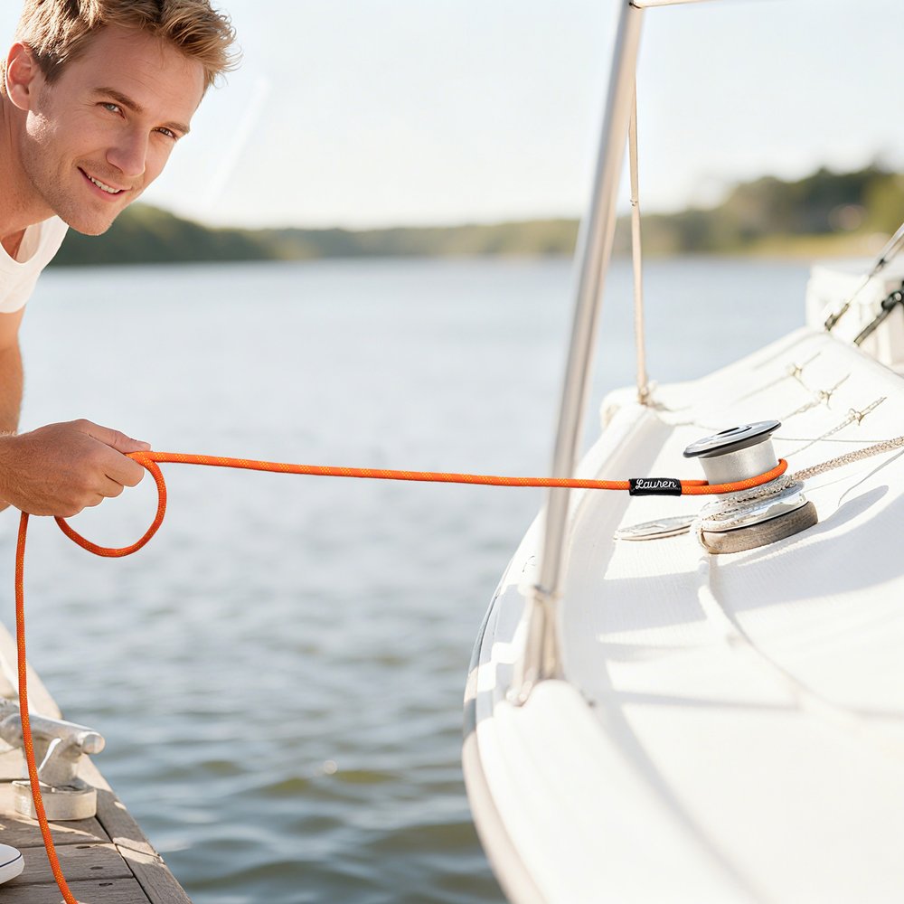 Cette corde d'amarrage est dotée d'un superbe motif brodé qui permet aux propriétaires de bateaux de la personnaliser avec le nom de leur bateau ou un message personnel. Cette touche unique rehausse non seulement l'attrait esthétique de la corde, mais permet également d'identifier rapidement sa propre corde sur les quais très fréquentés, garantissant ainsi commodité et style lors de l'amarrage.