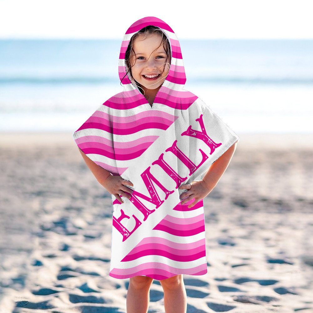 Cette serviette de plage pour enfants présente un thème de rayures en forme de vagues et offre un choix de 17 couleurs vibrantes qui attireront instantanément l'attention de votre enfant. Vous pouvez personnaliser les combinaisons de couleurs des rayures en fonction des préférences de votre enfant et ajouter son nom, ce qui rend chaque serviette unique et met en valeur sa personnalité et son style.