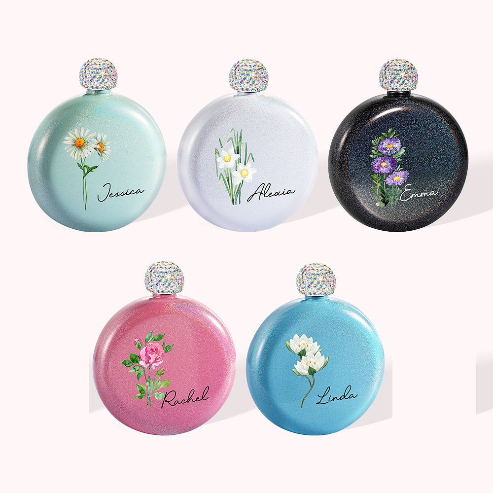 Surprenez et ravissez les femmes de votre vie avec cette flasque. La combinaison de son design unique, de sa finition pailletée, de son couvercle en strass et de son nom gravé en fait un cadeau attentionné et précieux pour les anniversaires, les propositions de demoiselles d'honneur ou toute autre occasion spéciale. Améliorez votre expérience de cadeau avec cette flasque élégante et personnalisée qui allie glamour et sentimentalité.