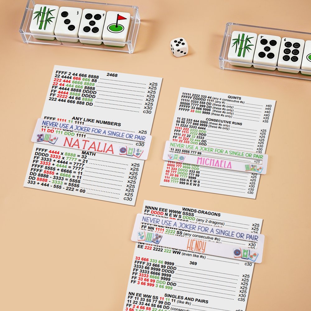 Fabriqué en acrylique de haute qualité, il est léger, fin et robuste. Il ne se déforme pas facilement, ne se casse pas et ne s'use pas facilement, même après une utilisation prolongée. Le motif et le nom sont clairs et éclatants, non toxiques, inodores et résistants à la décoloration, ce qui constitue une aide de jeu fiable pour les amateurs de mahjong.