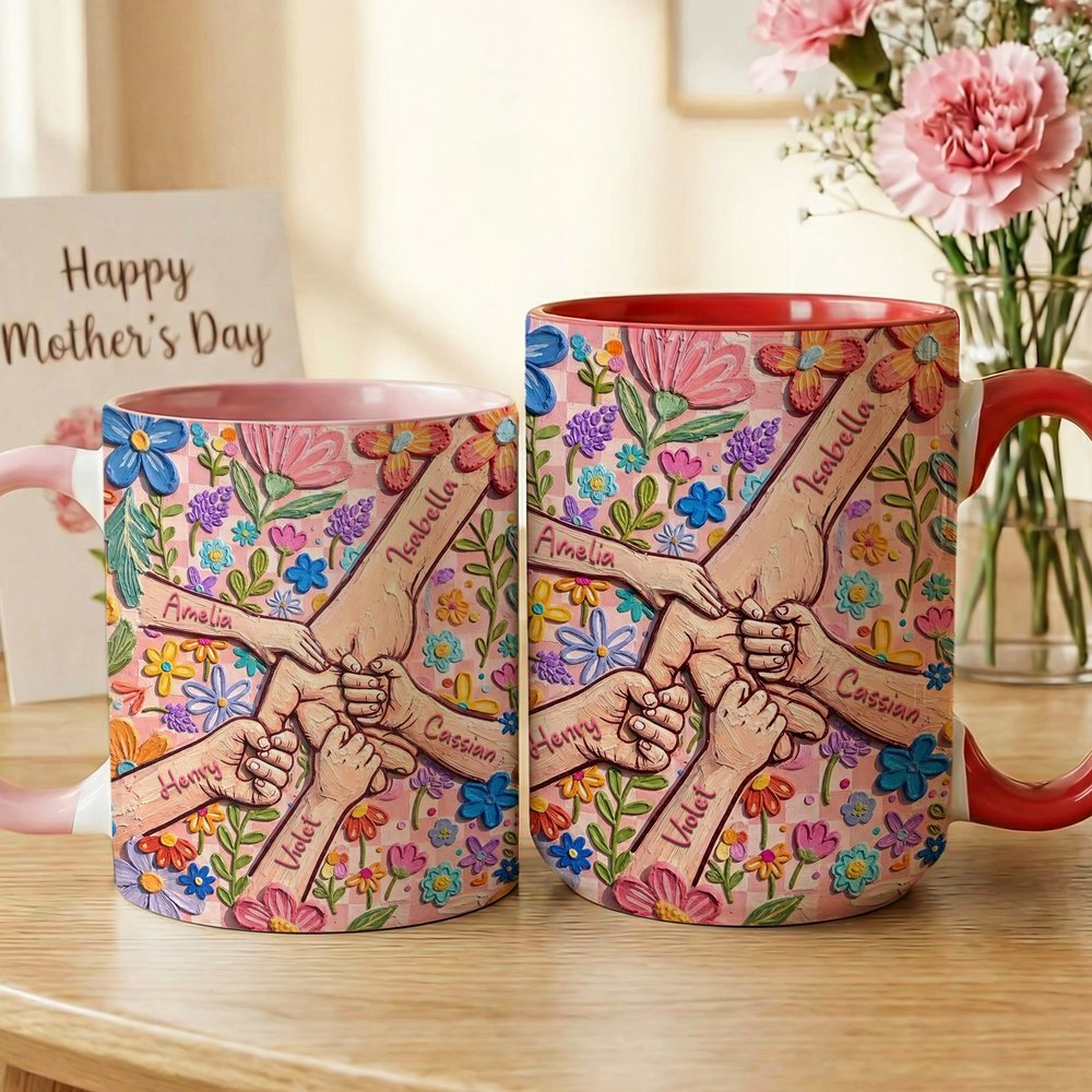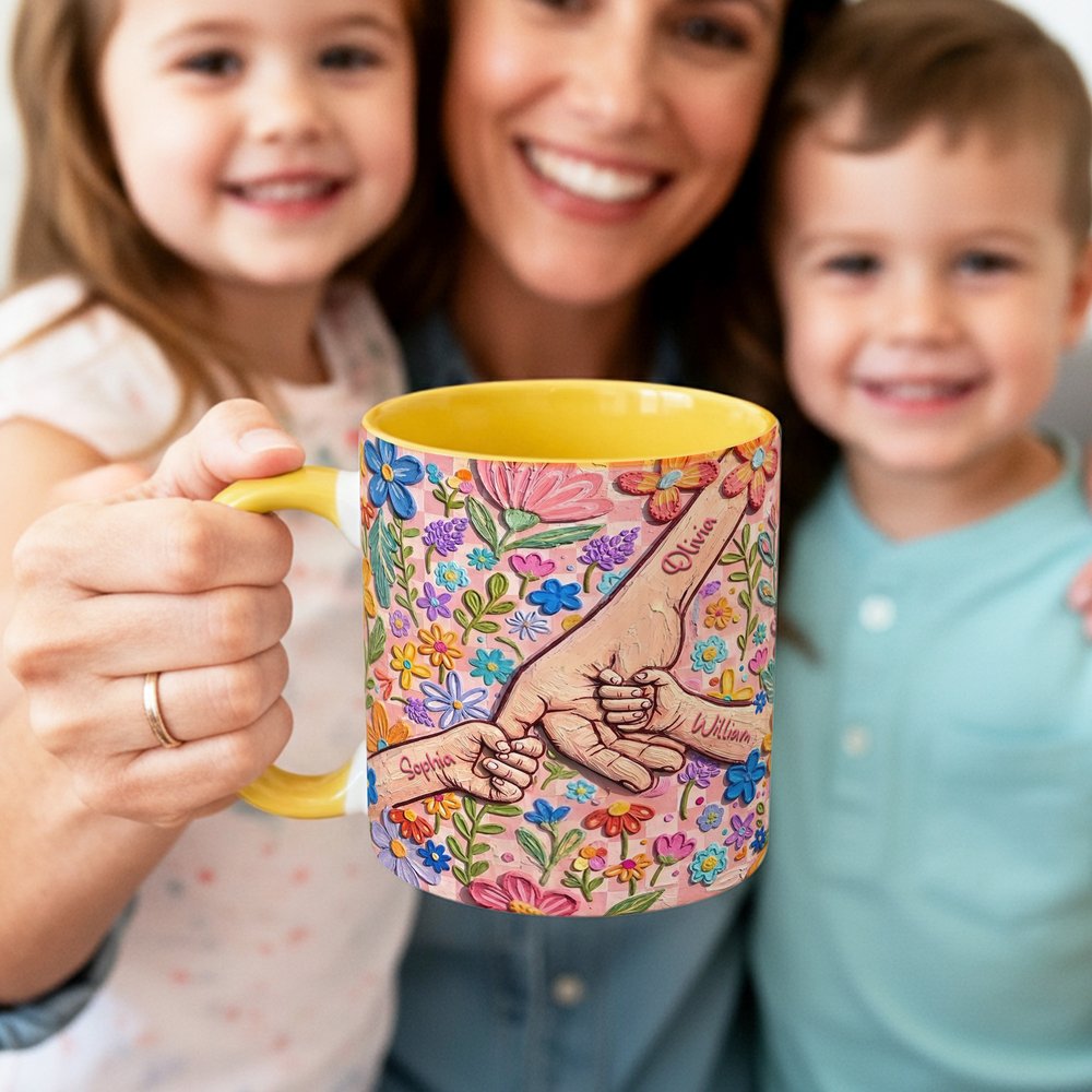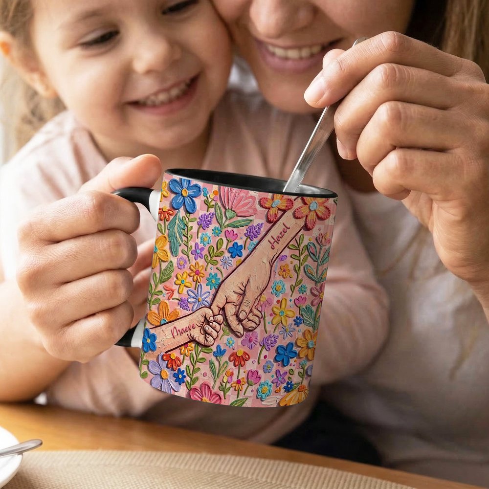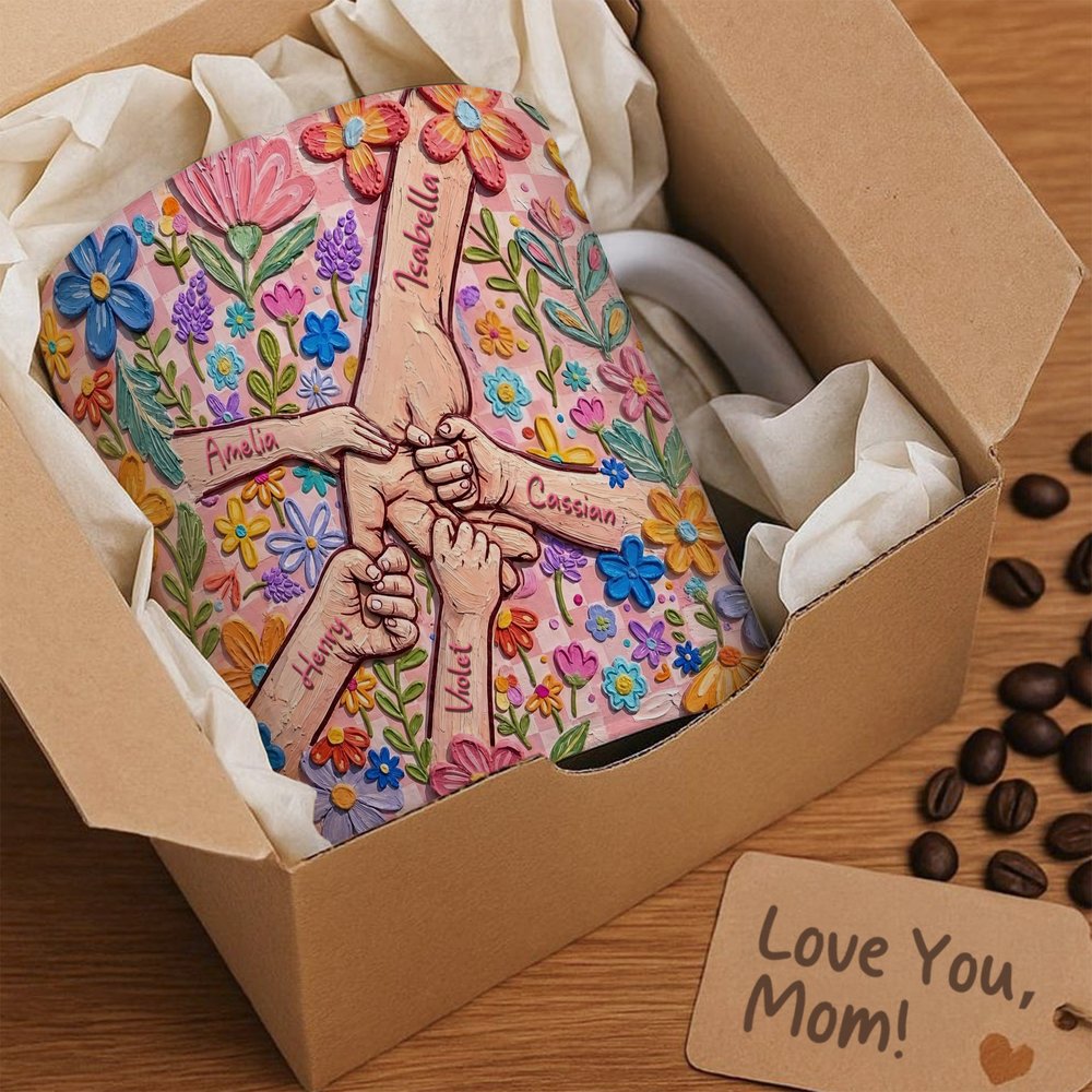 Inspiré par le lien affectif profond célébré lors de la fête des mères, ce modèle présente un motif de main tenue dans un style de peinture à l'huile riche en empâtements. Personnalisable avec les noms de la mère et de l'enfant, et disponible en deux tailles, c'est un cadeau chaleureux et artistique plein de sens.