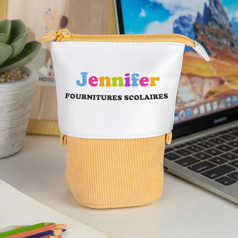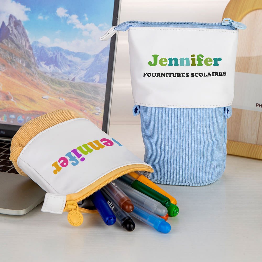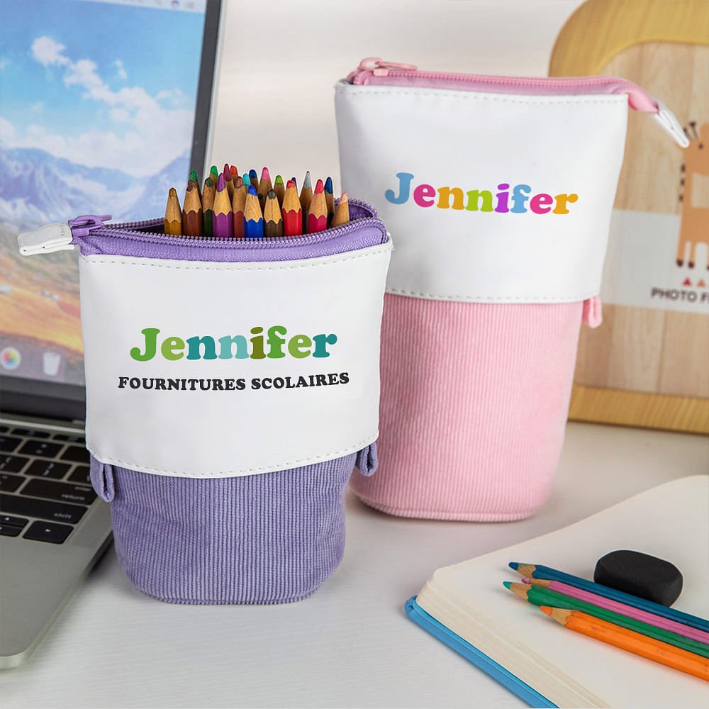 Vous cherchez des articles de papeterie pour la rentrée scolaire ? Cette trousse à crayons multicolore avec un nom et un contenu personnalisables vous plaira certainement. Il y a cinq couleurs au choix, et deux styles de couleurs avec des noms, de sorte que ce sac à crayons ajoute un style plus personnel ainsi que montre la personnalité et la nature de l'enfant.