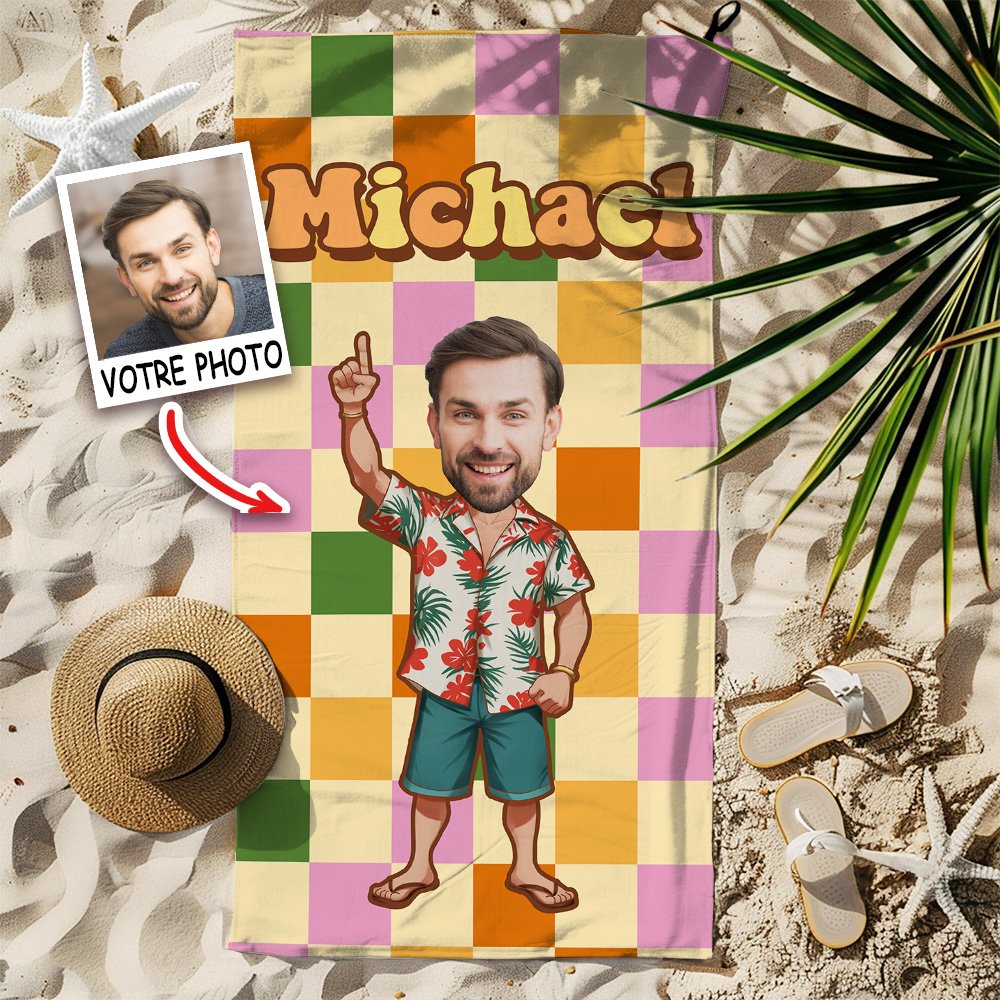 La véritable magie de cette serviette de plage réside dans sa touche personnalisée. En transformant une photo de votre proche en un charmant personnage de bande dessinée portant une chemise hawaïenne ou un bikini, ainsi que son nom, nous créons un souvenir unique qui capture l'essence de vos souvenirs d'été. Que ce soit pour vous, votre moitié ou toute la famille, cette serviette est un rappel tangible des joies de la vie à la plage.