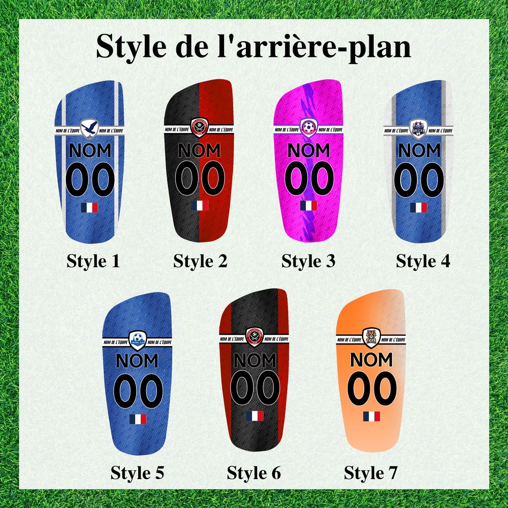 Ces protège-tibias de football personnalisés allient protection et style. Non seulement vous avez le choix entre sept styles personnalisables, mais vous pouvez également les personnaliser avec le nom, le numéro ou le logo de votre équipe pour un look unique, ce qui permet aux joueurs d'exprimer leur individualité à chaque match.