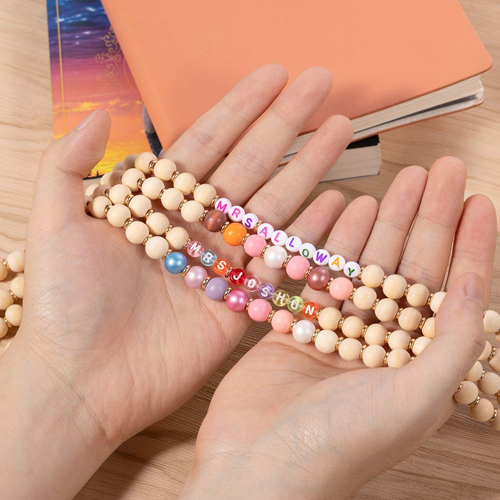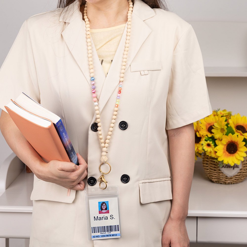 Ce cordon combine des perles acryliques brillantes et colorées avec des perles en bois simples et élégantes, conformément à l'esthétique populaire actuelle. Vous pouvez choisir le style qui vous convient, ajouter votre nom et créer le cordon qui vous convient le mieux, en démontrant pleinement votre fierté unique en tant qu'enseignant.