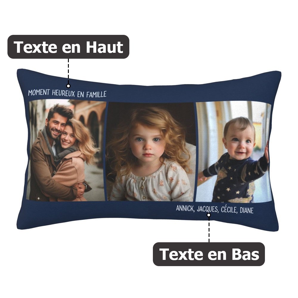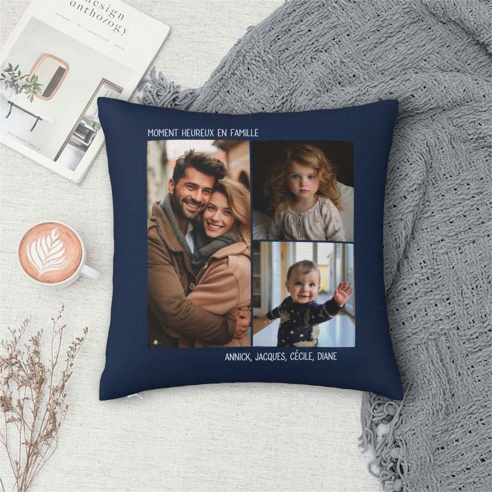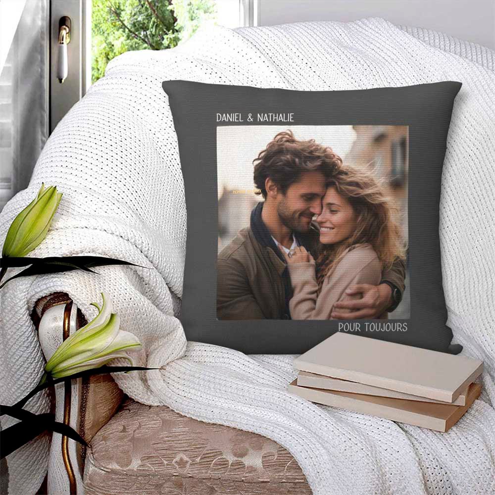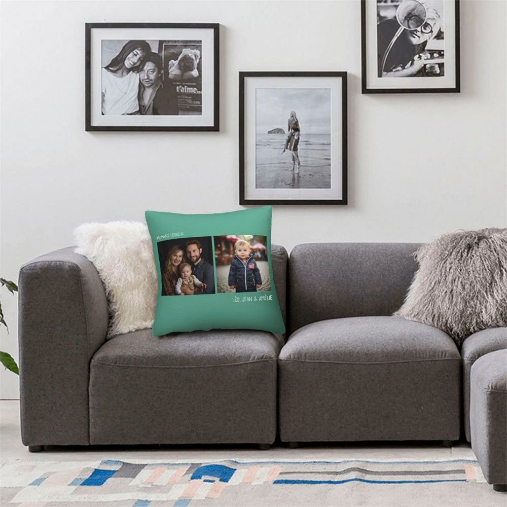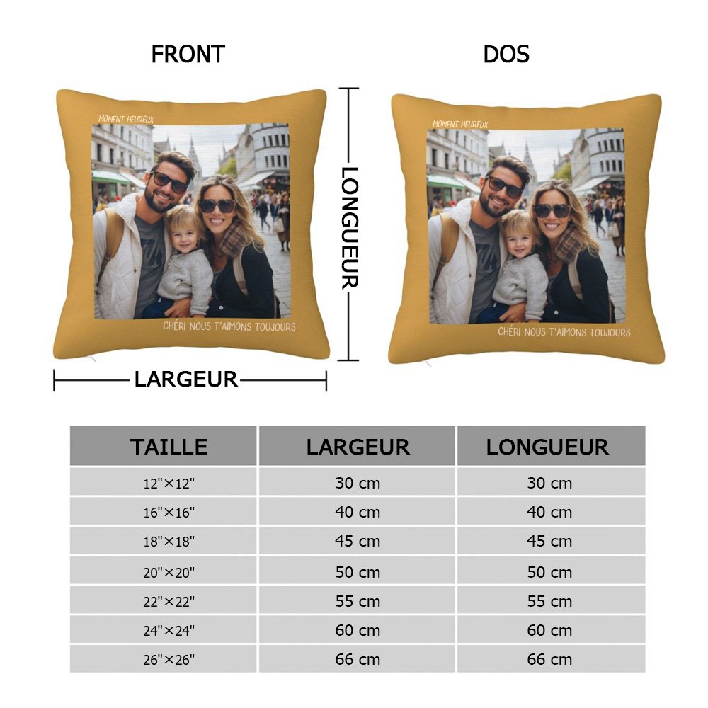 Nos housses de coussin sont fabriquées dans un tissu de haute qualité et présentent un motif vibrant et coloré. L'impression personnalisée garantit que la photo et le texte sont clairs et nets, ajoutant une touche personnelle à n'importe quelle pièce ou espace.