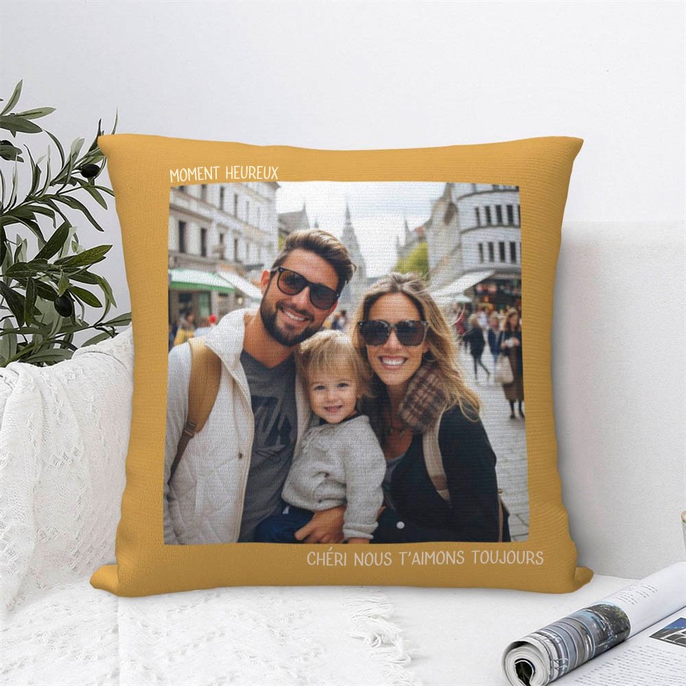 Créez un cadeau vraiment spécial et réconfortant pour vos proches avec notre housse de coussin colorée personnalisée. Combinez leur belle photo et un texte sincère pour transmettre votre amour.