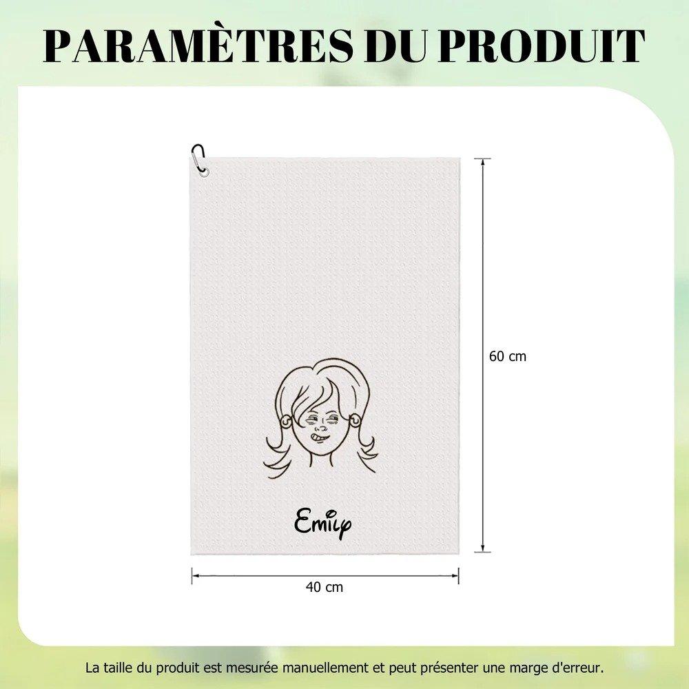 Cette serviette de golf comporte une image de personnage de style bande dessinée qui peut être conçue avec différentes expressions selon vos préférences, ce qui la rend très amusante. La serviette est imprimée avec un nom personnalisé, et la police de caractères reprend le style de la bande dessinée, vivante et accrocheuse. Les serviettes de sport sont à la fois un équipement pratique et un "produit sportif tendance" qui met en valeur l'individualité.