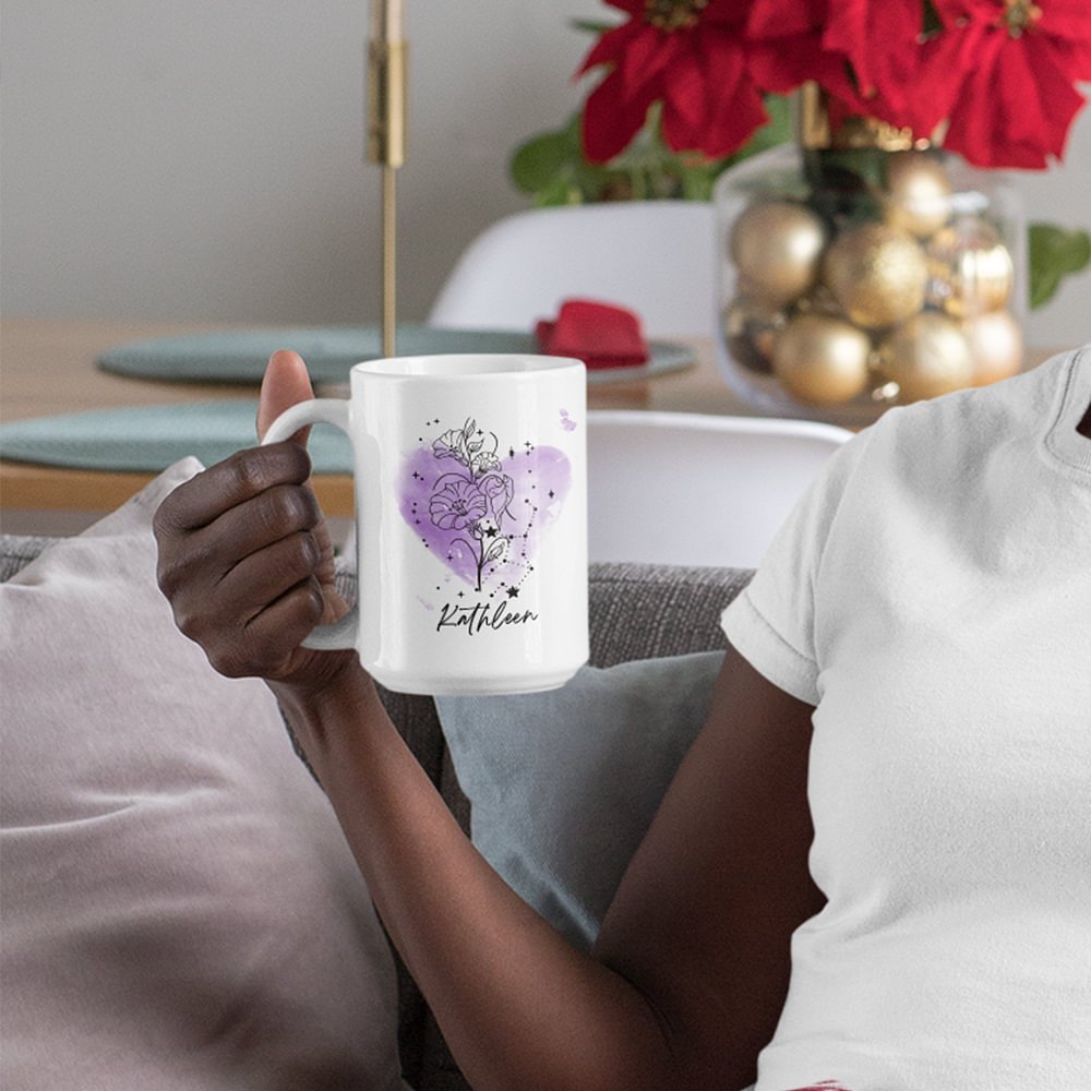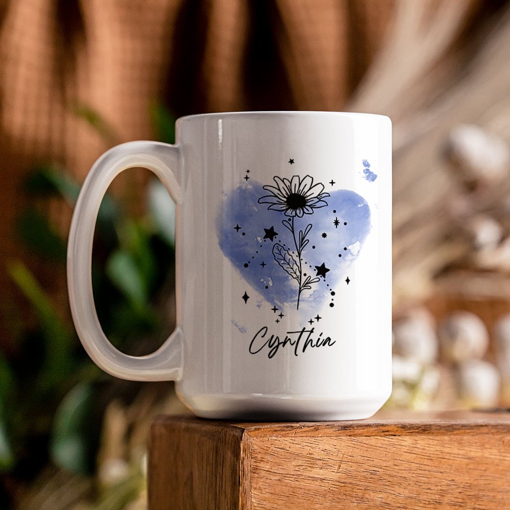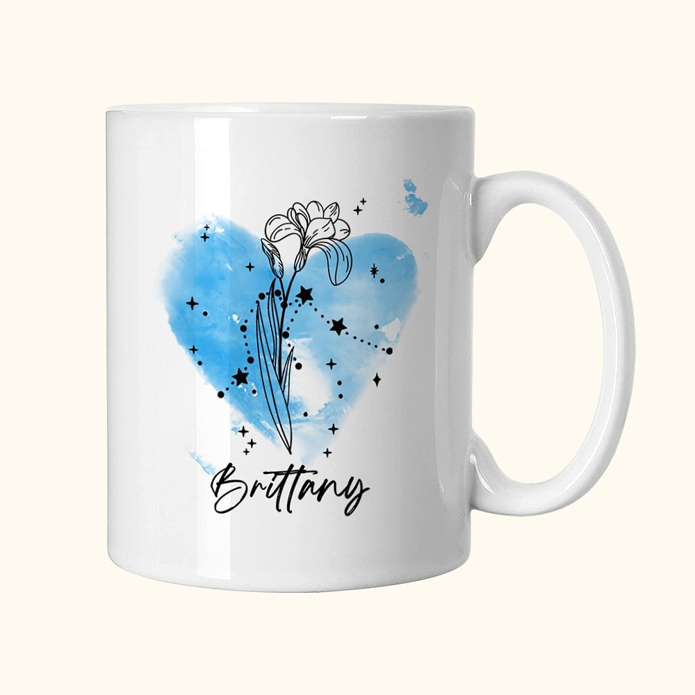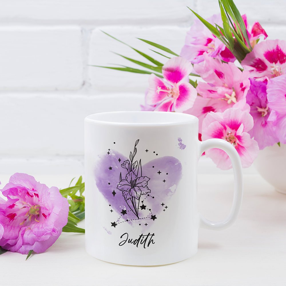 L'astrologie est depuis longtemps une source de fascination et d'inspiration pour beaucoup, et ce mug donne vie à cette passion d'une manière à la fois pratique et belle. Chaque mug présente la constellation zodiacale du destinataire et la fleur de naissance correspondante, ce qui en fait un hommage significatif et personnel à son signe astrologique.