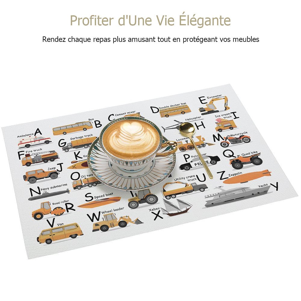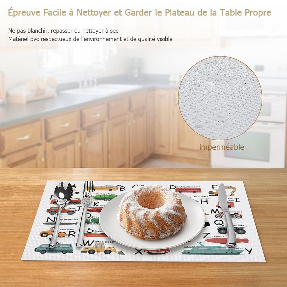 Mesurant 17.7"*11.8", ces napperons de table pour enfants offrent une bonne taille et une atmosphère de repas amusante pour les tout-petits, garçons et filles. Idéal pour une utilisation à la maison et à l'école.