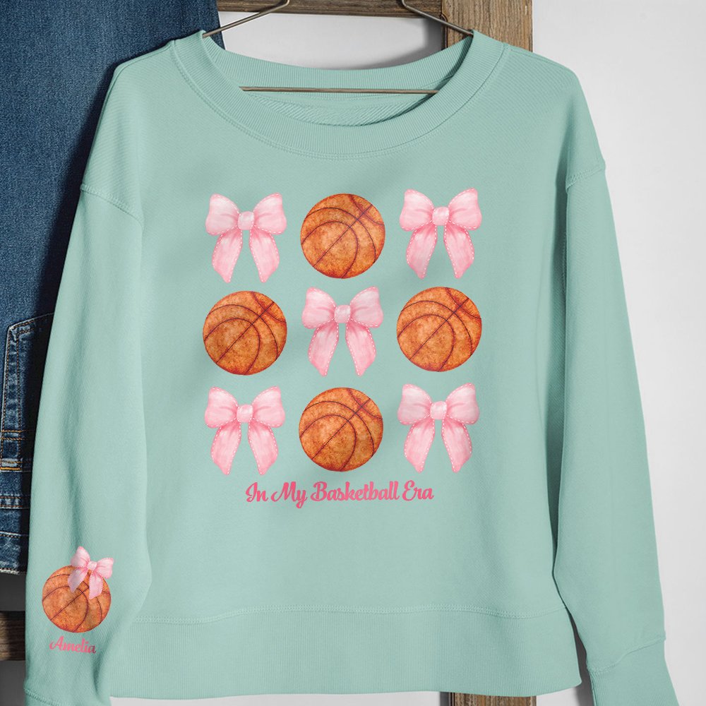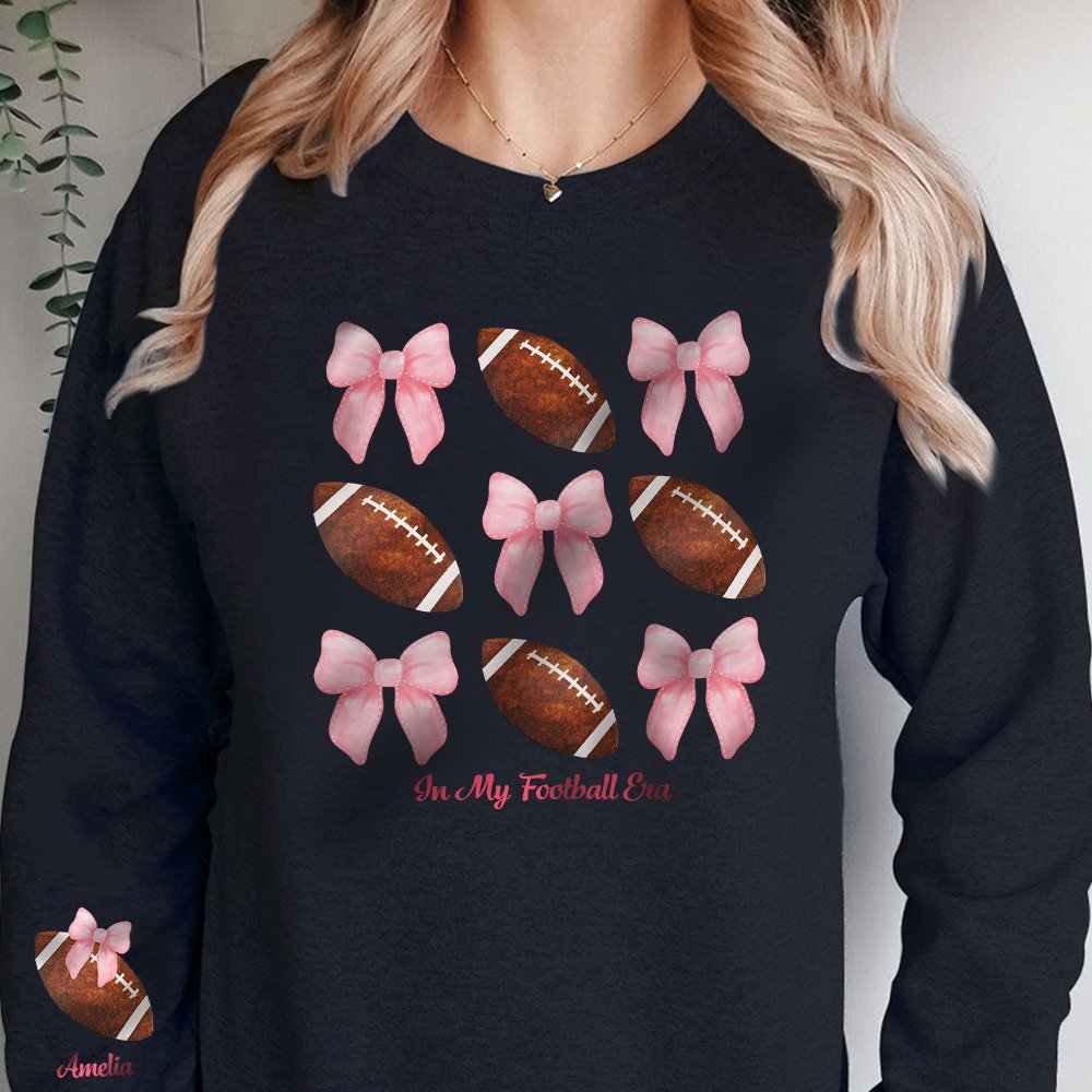 Ce sweat-shirt présente un design créatif unique, combinant le motif du nœud et celui de la boule. Ce design créatif unique attire particulièrement l'attention et témoigne de l'ingéniosité unique du créateur. Le "nœud coquette" fait référence à un nœud élégant avec des éléments romantiques et sophistiqués, qui est souvent utilisé dans les vêtements et les accessoires pour montrer la douceur et la personnalité d'une femme. Chaque nœud est associé au basket-ball, au football, au softball, au base-ball, au volley-ball et au football américain, soulignant ainsi la vitalité et la passion du sport. Le milieu du sweat peut être personnalisé avec un nom et la manche gauche peut également l'être.
