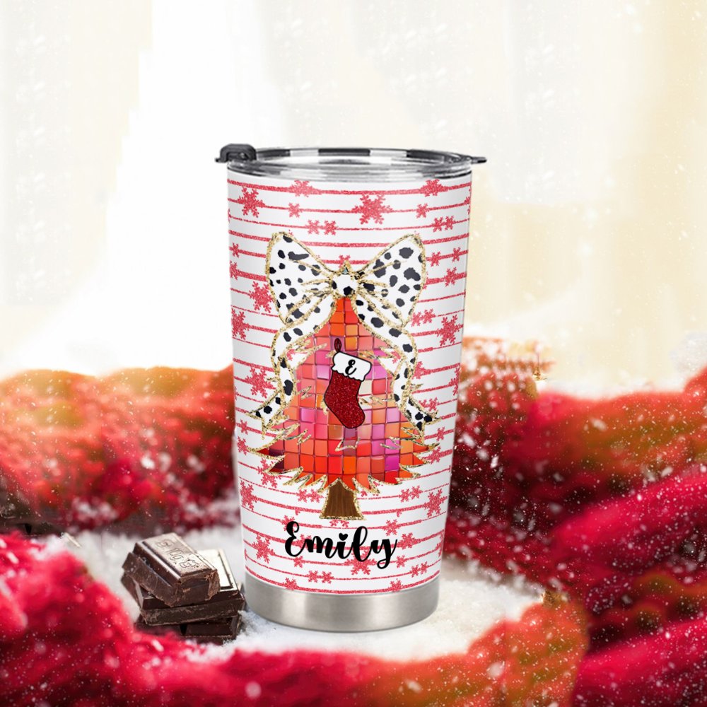 Créez un cadeau de Noël unique en son genre avec notre gobelet personnalisé de 20 oz, orné d'un nœud coquette et d'un sapin de Noël à paillettes. Vous pouvez également ajouter un nom et un motif de chaussettes initiales, pour que ce gobelet soit unique en son genre. Ce gobelet vibrant et festif est parfait pour répandre la joie des fêtes.