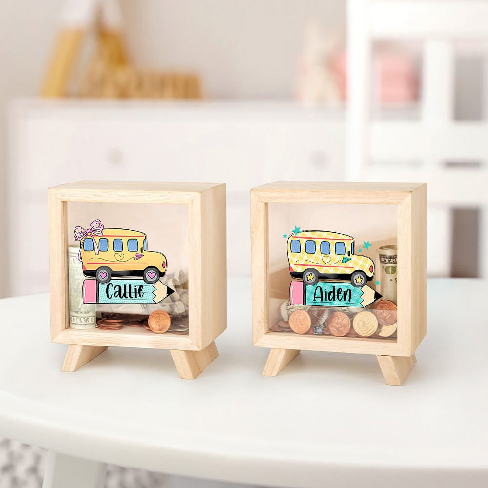 Nos tirelires sont le cadeau idéal pour les enfants. Vous avez le choix entre deux jolis motifs de bus scolaire : le nœud coquette rose ou l'étoile bleue. De plus, vous pouvez ajouter le nom de l'enfant à la tirelire pour rendre le cadeau encore plus spécial.