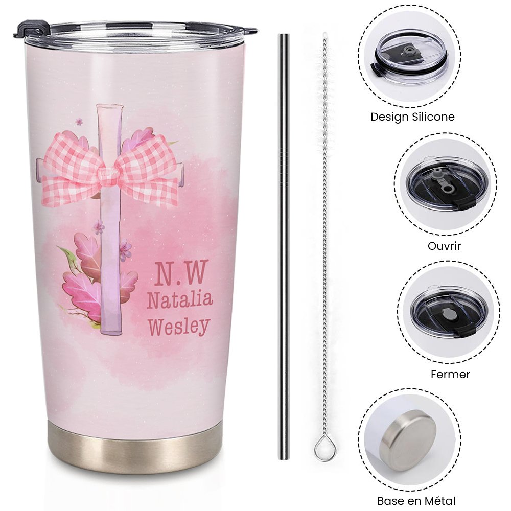 Le gobelet de style romantique utilise le rose comme couleur de base, avec un motif de nœud papillon coquette et un élément en forme de croix, illustrant la douceur et le romantisme féminins. Avec neuf jolis motifs de nœuds papillon au choix, le gobelet peut être personnalisé pour une touche tout à fait personnelle.