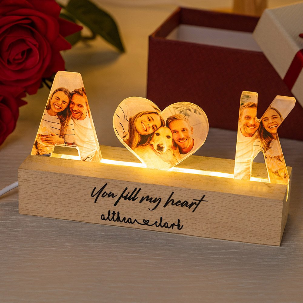 Cette veilleuse utilise un éclairage LED doux et chaleureux, associé à une photo imprimée en acrylique transparent, pour mettre en valeur votre douceur. La base en bois épais avec des bords lisses se tiendra solidement sur votre bureau ou votre table de chevet, parfaite pour la décoration de la chambre ou du salon.