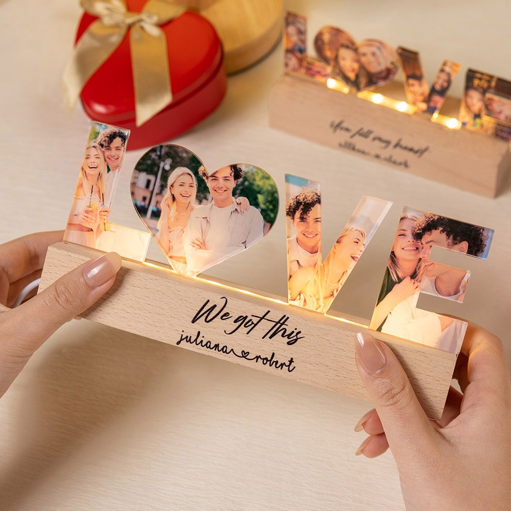 En plus des photos, vous pouvez personnaliser la veilleuse avec des noms et une citation, ce qui en fait un souvenir spécial pour les couples. Cette touche personnelle ajoute de la signification à la veilleuse, la transformant en un souvenir précieux qui célèbre votre relation.