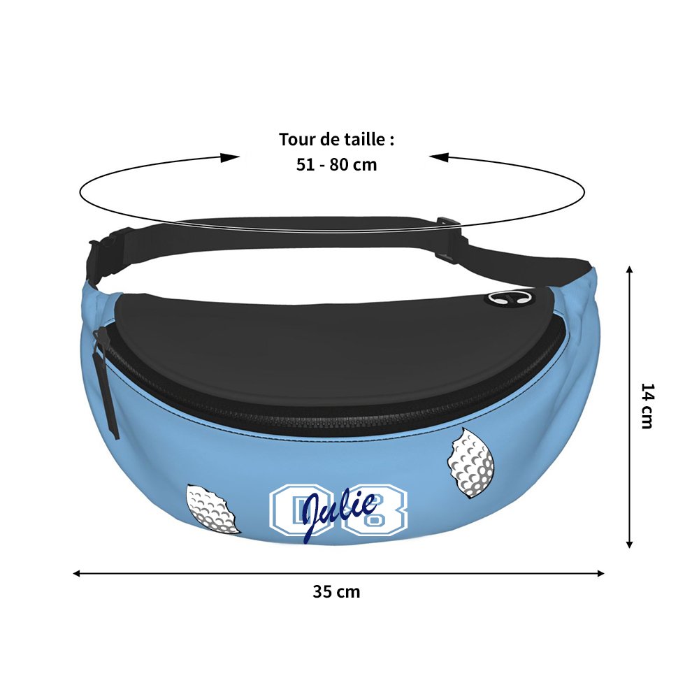 Choisissez parmi 24 couleurs de sac de taille, 8 couleurs de police et personnalisez votre nom et votre numéro. Il existe également 9 types de motifs de balles craquées, dont le base-ball, le basket-ball, le billard, le golf, le football, le tennis, le soft-ball, etc. Intégrez des éléments sportifs exclusifs dans le design, transformant le sac de taille en un accessoire de sport unique et à la mode.