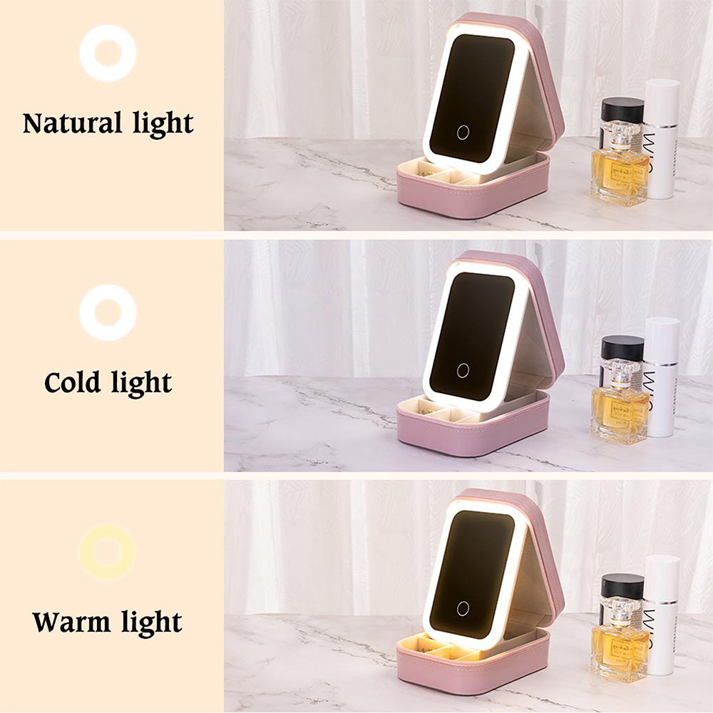 Équipé d'un miroir LED, il dispose de trois réglages de couleur - lumière chaude, lumière naturelle et lumière froide - qui peuvent être utilisés pour créer différentes atmosphères. Il est livré avec un câble de chargement et peut être utilisé pendant environ une semaine avec une seule charge. Que vous vous prépariez pour une soirée ou une journée décontractée, vous pouvez choisir la lumière qui convient le mieux à vos besoins. Ce miroir pratique est parfait pour se maquiller et vérifier son maquillage.