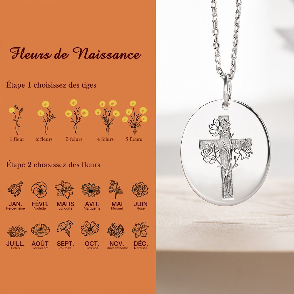 Surprenez-la avec un cadeau qui associe sa foi, son mois de naissance et son individualité. Ce collier personnalisé de noms croisés avec breloque de fleur de mois de naissance est un cadeau attentionné et excitant pour les anniversaires, les étapes religieuses ou toute autre occasion spéciale.