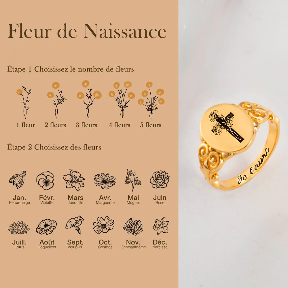 Chaque fleur de naissance possède son propre symbolisme et sa propre signification, représentant les traits et caractéristiques uniques associés au mois de naissance. En choisissant la fleur de naissance qui résonne en vous ou en votre proche, vous pouvez créer une bague profondément personnelle et significative.