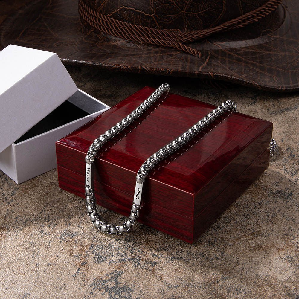 Ce collier cubain pour homme peut être personnalisé avec deux noms, créant ainsi une pièce unique et personnalisée qui constitue un cadeau d'anniversaire idéal pour les hommes.