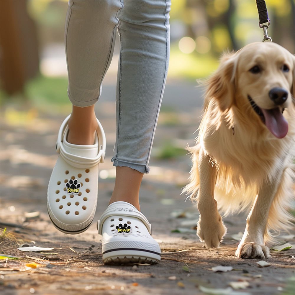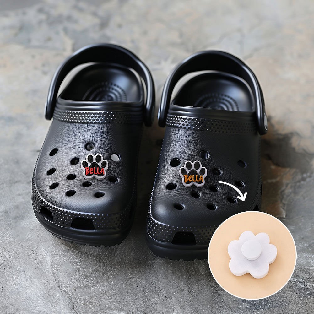 Ces charmantes breloques pour chaussures ajoutent une touche ludique à vos chaussures préférées, transformant des chaussures ordinaires en chaussures amusantes. Chaque breloque présente un adorable motif de patte de chien en 3D ainsi qu'un nom personnalisé, ajoutant un style unique pour créer un accessoire de chaussure qui vous est propre.