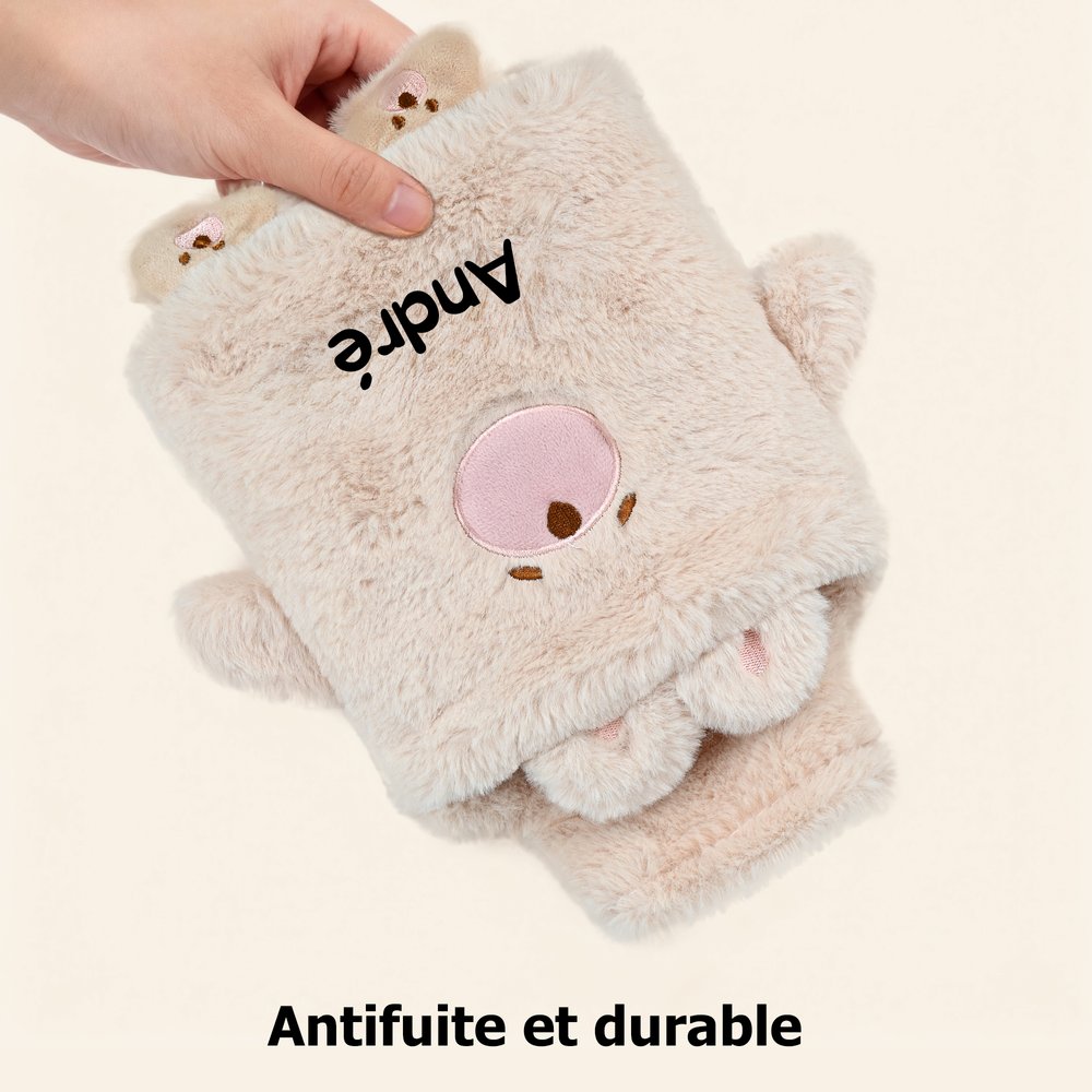 Disponible en 4 styles d'animaux adorables - ours, lapin, canard et licorne fantastique - avec des couleurs vibrantes, cette bouillotte vous permet de la personnaliser avec un nom sur le couvercle câlin, la transformant en un compagnon de chaleur unique et personnalisé qui complète n'importe quel décor de la maison.