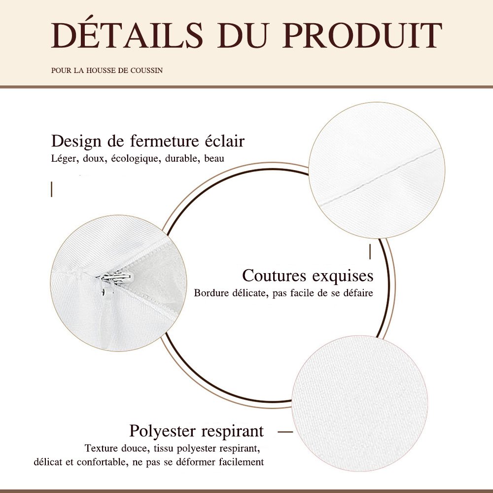 La housse de l'oreiller est fabriquée en polyester confortable et doux au toucher. Sa texture douce améliore le confort général et apporte une touche apaisante lorsque vous vous reposez. La fermeture à glissière cachée garantit une ouverture et une fermeture en douceur. L'insertion ou le retrait rapide et facile de l'oreiller vous permet de changer ou de nettoyer la housse.
