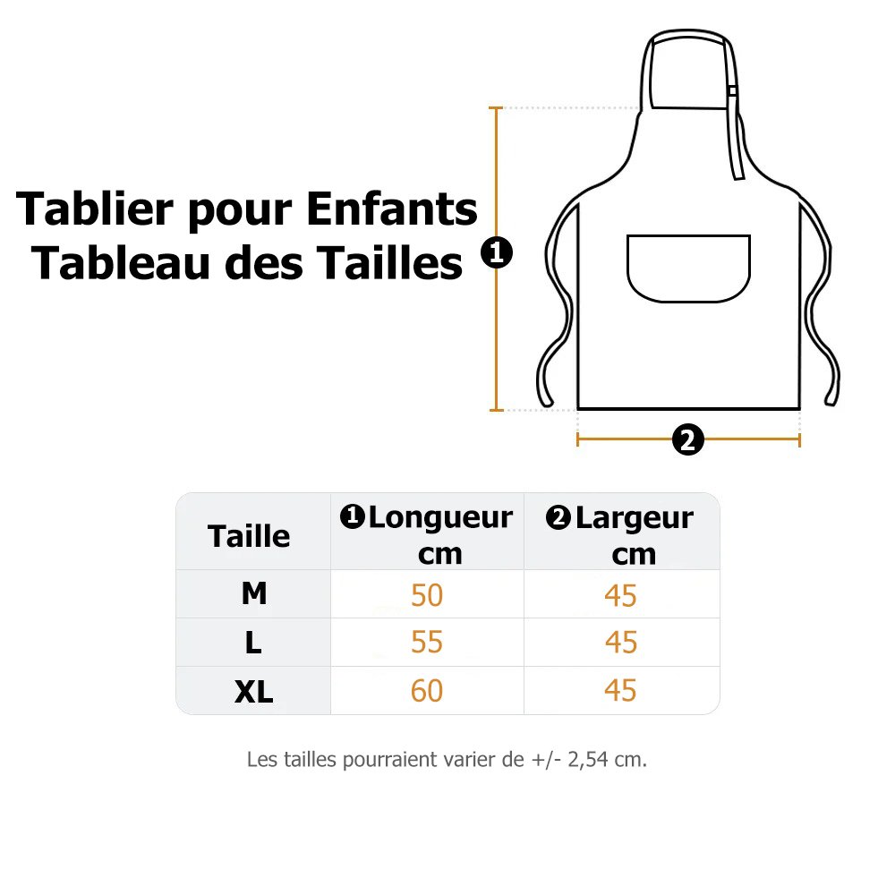 Fabriqué en tissu imperméable de haute qualité, il résiste efficacement aux éclaboussures, garantissant que votre petit chef reste au sec et à l'aise pendant qu'il cuisine. Le tissu résistant est facile à nettoyer, ce qui permet d'économiser du temps et des efforts, et les bretelles réglables s'adaptent parfaitement à la croissance de votre enfant. La toque est confortable et élastique, et s'adapte parfaitement au tour de tête de votre enfant. La large poche frontale est parfaite pour ranger les ustensiles, les fiches de recettes et d'autres objets.
