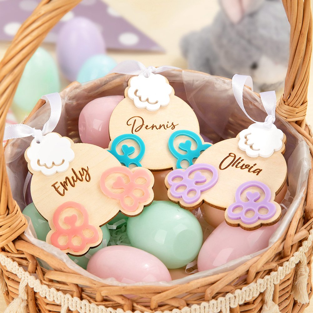 Cette étiquette s'inspire du mignon derrière de lapin, avec une queue de lapin arrondie en trois dimensions et un design de petits pieds, plein d'enfantillage et de chaleur. Une technologie de gravure au laser exquise et un nom personnalisable en font une décoration de vacances unique. Associé à un ruban blanc pur, il ajoute non seulement de l'élégance, mais il est également facile à suspendre dans différentes scènes.