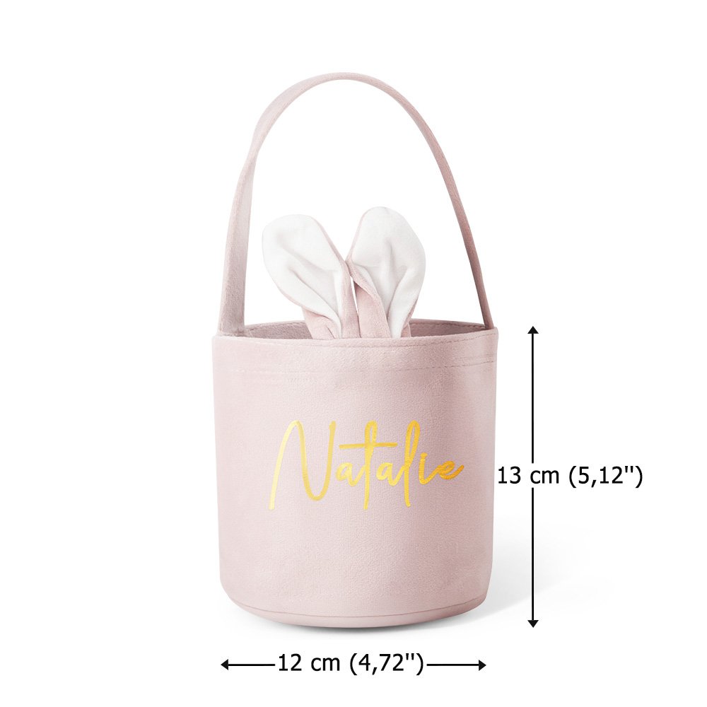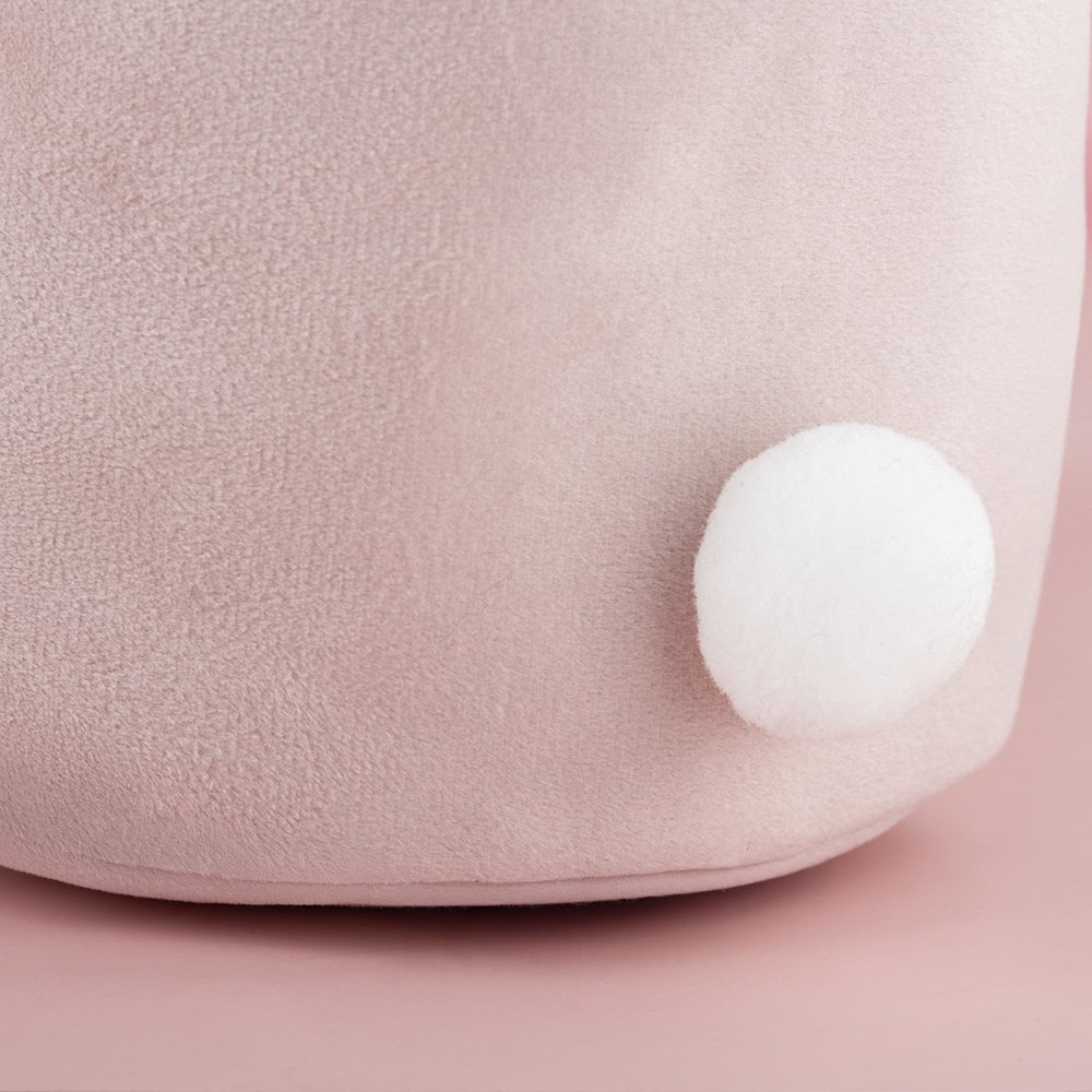 Ce sac seau présente des tons doux de rose et de bleu chauds et a la forme d'un lapin, avec deux oreilles sur le bord et une mignonne queue à pompon à l'arrière, ce qui est très enfantin. Vous pouvez y ajouter votre nom pour créer un sac spécial pour votre enfant.