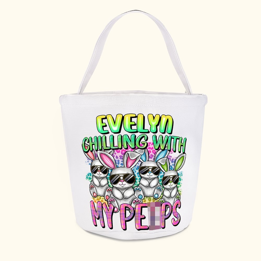 Ce panier en toile est spécialement conçu pour Pâques et présente un lapin mignon et cool avec des lunettes de soleil. Vous pouvez également personnaliser votre nom avec différentes couleurs de police pour le rendre unique. C'est un cadeau parfait pour la famille et les amis, ajoutant une touche de mignonnerie et d'atmosphère de Pâques.