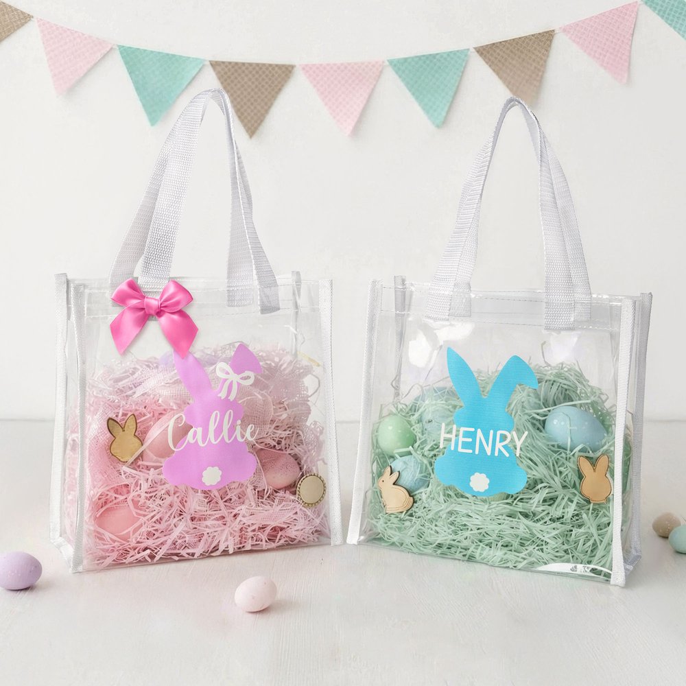 Fabriqué en PVC transparent, ce sac est résistant à l'eau et aux taches. Il est conçu pour résister à un usage répété sans se déformer ni se fissurer. Les poignées renforcées garantissent une forte capacité de charge, permettant de transporter facilement tous les objets, des œufs de Pâques aux bonbons en passant par les petits jouets. Les imprimés vibrants du lapin sont durables et résistants à la décoloration, ce qui fait de ce sac un compagnon durable pour les fêtes de Pâques et l'organisation de tous les jours.