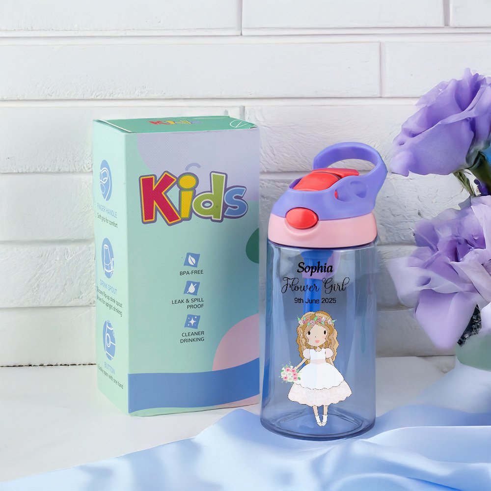 Inspirée par la charmante tradition du mariage, cette bouteille d'eau célèbre les bouquetières et les porteurs d'anneaux grâce à des dessins animés personnalisés. Avec des garçons en smoking et des filles en robe, cette bouteille illustre parfaitement l'innocence et la joie que ces enfants apportent aux occasions spéciales. Chaque bouteille peut être personnalisée avec un nom et une date, transformant chaque gorgée en un souvenir précieux de ces moments spéciaux.